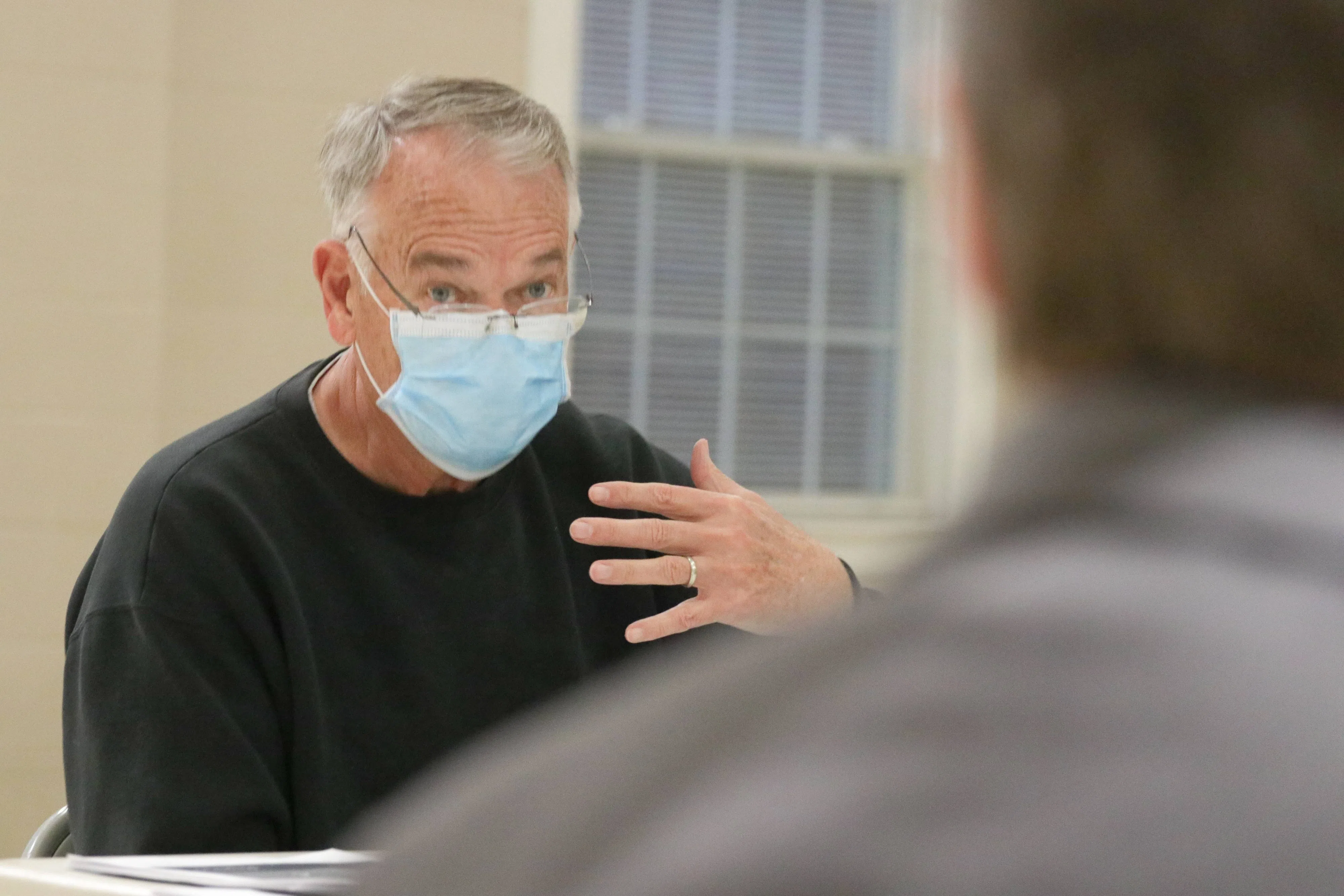 Warren Cunningham, Barren County High School athletic director, speaks at an athletic signing held inside Barren County High School's gymnasium on Tuesday, Feb. 23, 2021. (BRENNAN CRAIN/WCLU NEWS) GLA...