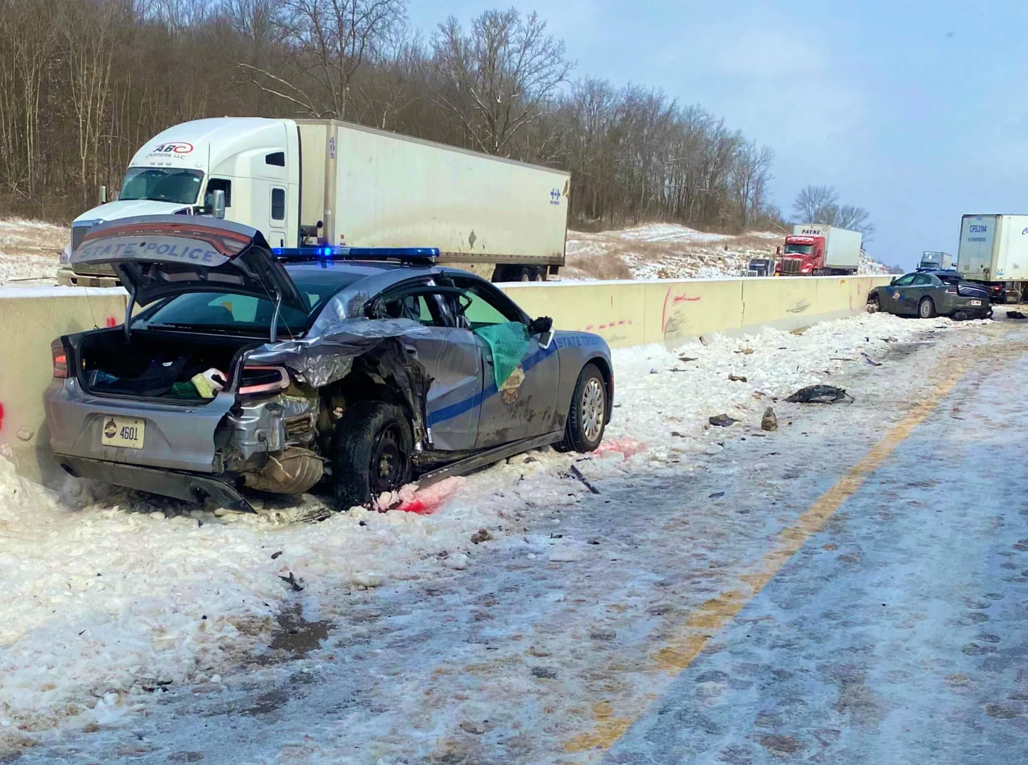 The truck continued on and struck the KSP cruisers, the tow truck and the initial commercial vehicle that was blocking the roadway. Singh died in the crash.