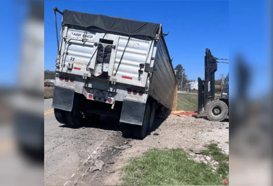 GLASGOW – A semi-trailer hauling corn has crashed along Burkesville Road causing only one lane to be open to traffic.