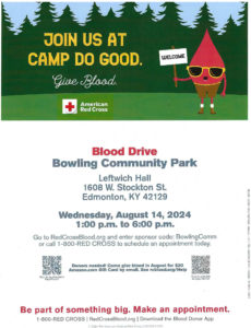 The American Red Cross is hosting a blood drive at Bowling Community Park in Edmonton this Wednesday, August 14 from 1:00 – 6:00 p.m.