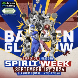 Are you a Glasgow or Barren County student, or have you ever been? Be on the Glasgow Square from 4:30 – 6:30 p.m. Sept. 18 let your spirit shine at the Spirit Week event for Glasgow and Barren County.
