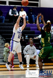 Caverna’s Preston Caummisar shoots a 3-pointer against Fort Knox. The Colonels won, 86-69. John Brown/WCLU Sports