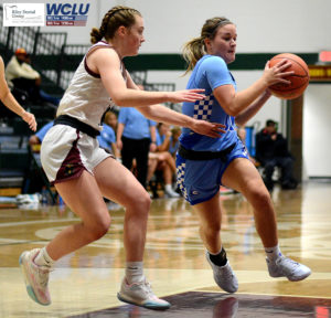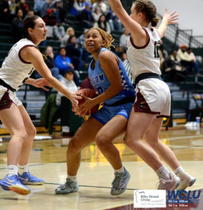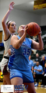 Glasgow’s Cynthia Austin drives against Greenwood. The Lady Scotties lost, 38-31. John Brown/WCLU Sports