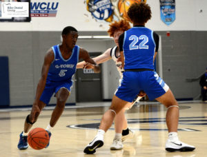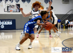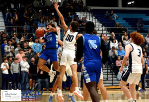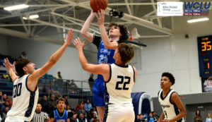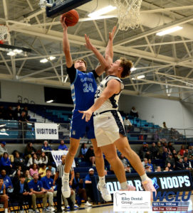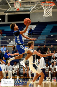 Glasgow’s Quinn Nunley finishes at the rim after getting an assist from Jaylen Bradley against Logan County in a 2A Sectional contest. The Scotties lost, 58-50. John Brown/WCLU Sports