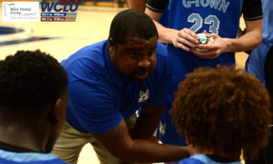 Glasgow boys’ basketball coach Brandon Stockton talks to his players during a time out against Logan County in a 2A Sectional contest. The Scotties lost, 58-50. John Brown/WCLU Sports