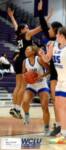 Glasgow’s Cynthia Austin drives into the lane against South Warren. Glasgow won, 30-25. John Brown/WCLU Sports