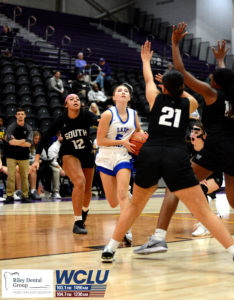 Glasgow’s Karli Hagan looks to shoot in the lane against South Warren. Glasgow won, 30-25. John Brown/WCLU Sports