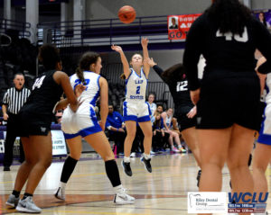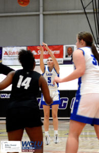 Glasgow’s Kerigan Hagan shoots a 3-pointer against South Warren. Glasgow won, 30-25. John Brown/WCLU Sports