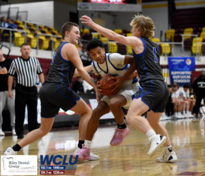 Glasgow’s Jaylen Bradley drives between defenders against Clinton County. The Scotties lost, 67-35. James Brown/WCLU Sports