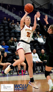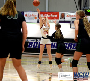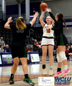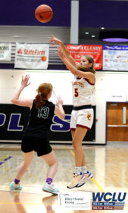 Barren County’s Ann Ashley Atkinson shoots a 3-pointer against Cumberland County. The Trojanettes won, 50-28. John Brown/WCLU Sports