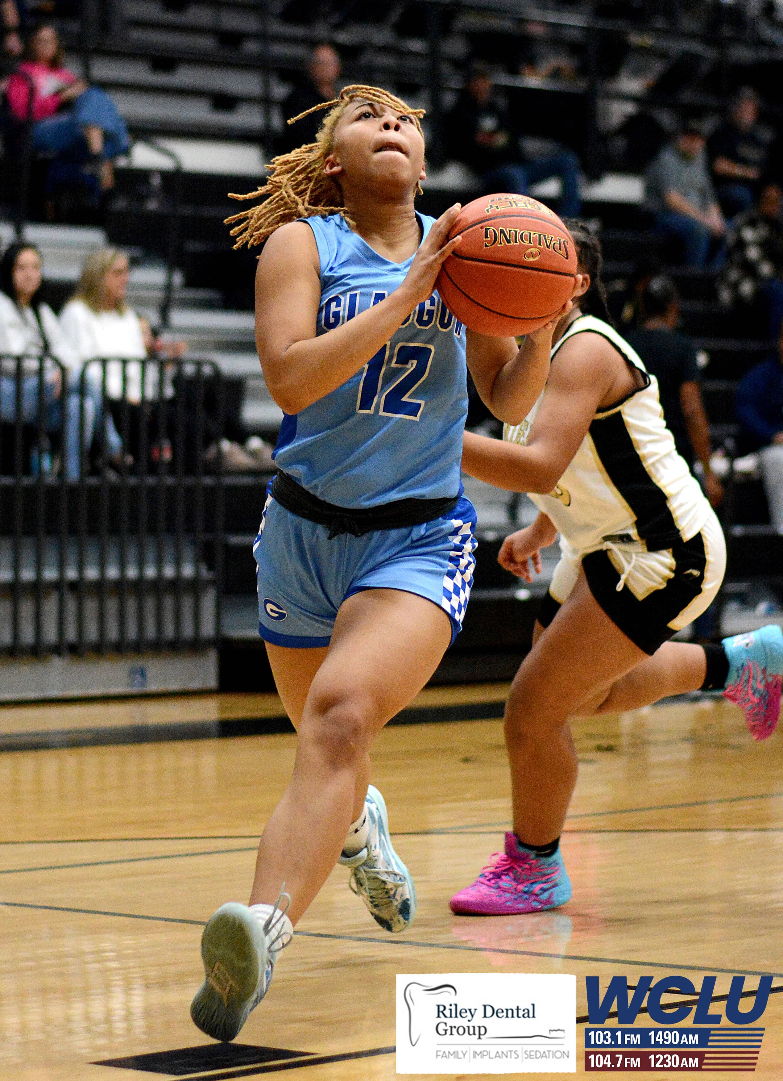 Glasgow’s Kerigan Hagan drives towards the basket against Russellville. Glasgow won, 56-35. John Brown/WCLU Sports