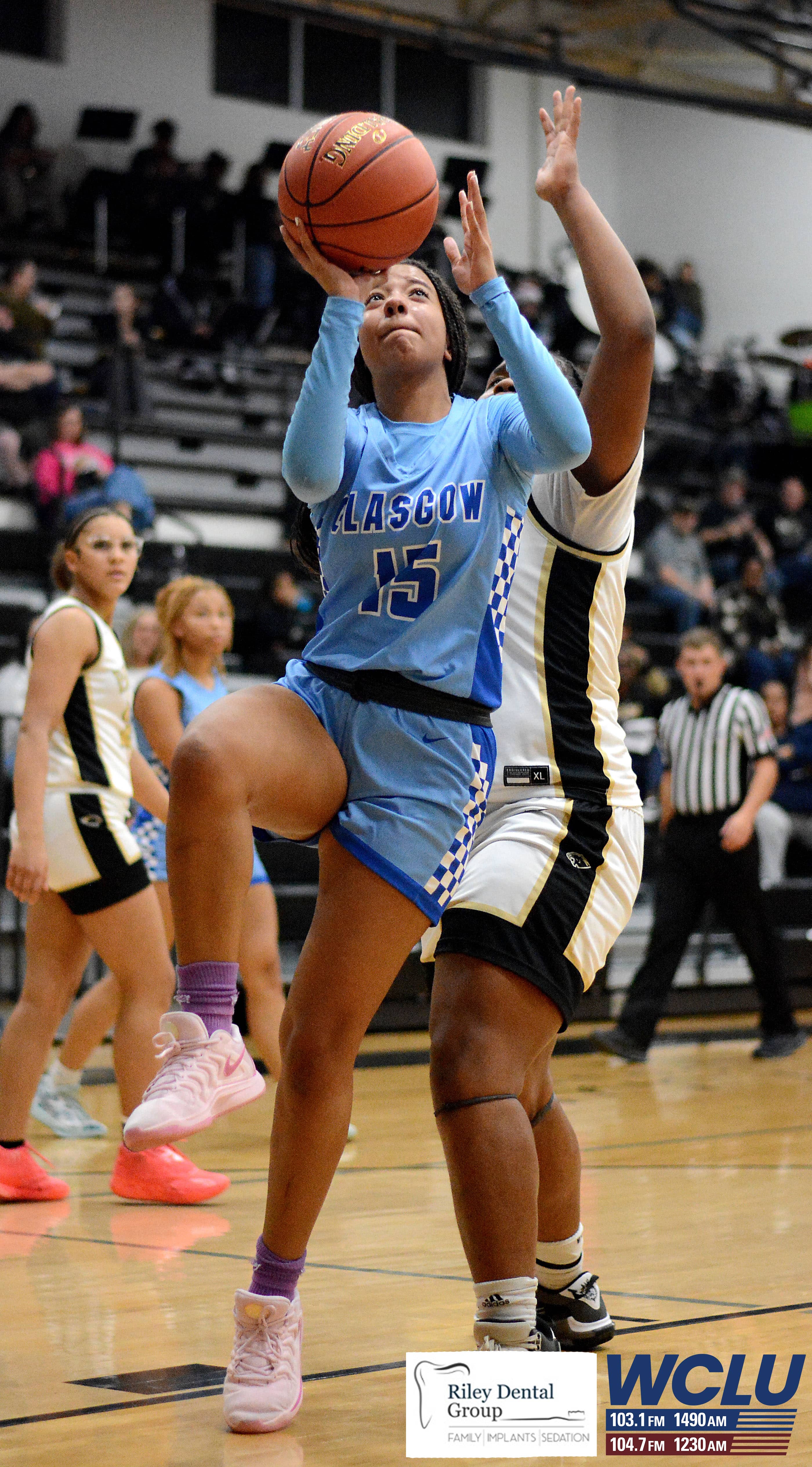 Glasgow’s Kayla Kirkpatrick shoots a layup against Russellville. Glasgow won, 56-35. John Brown/WCLU Sports