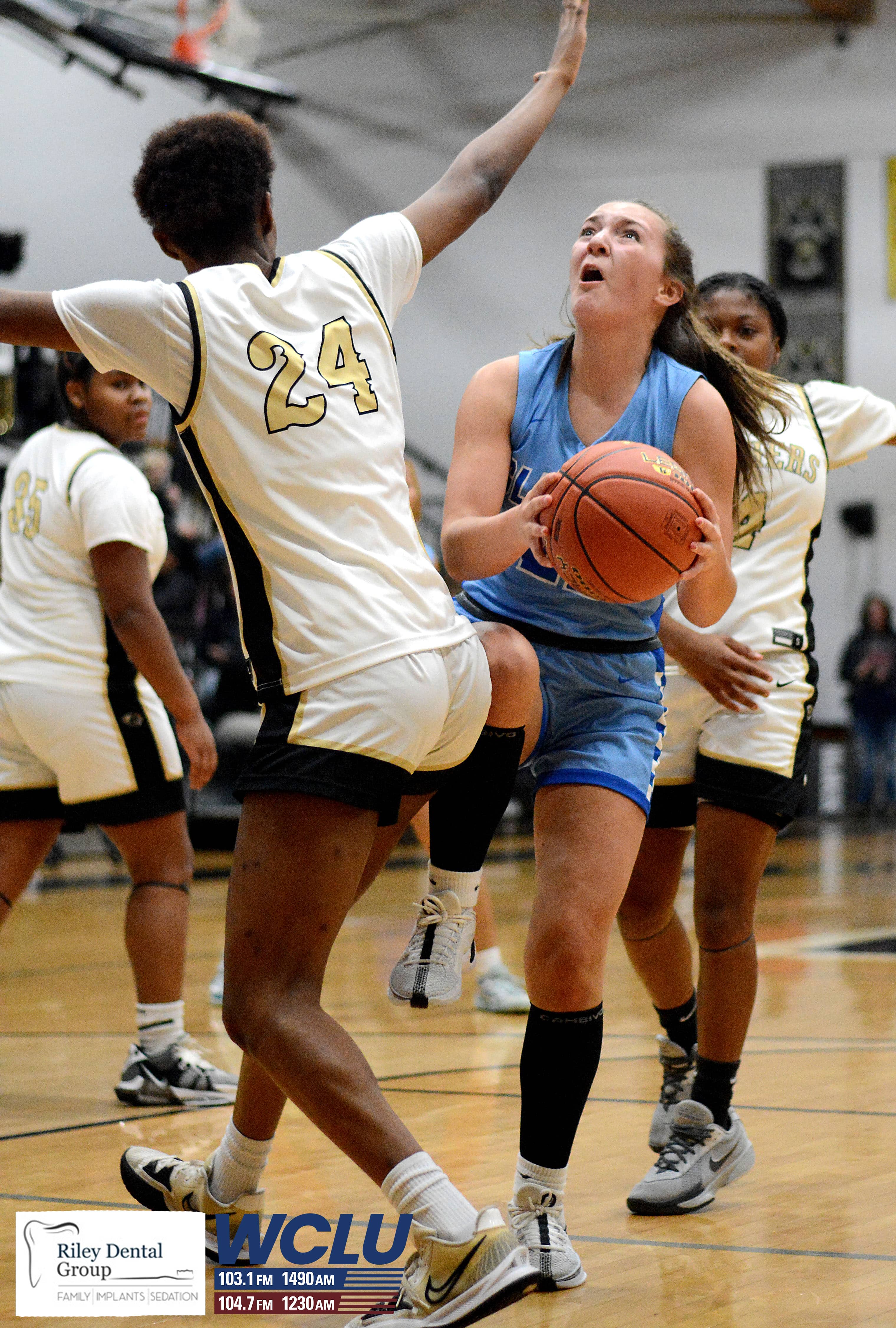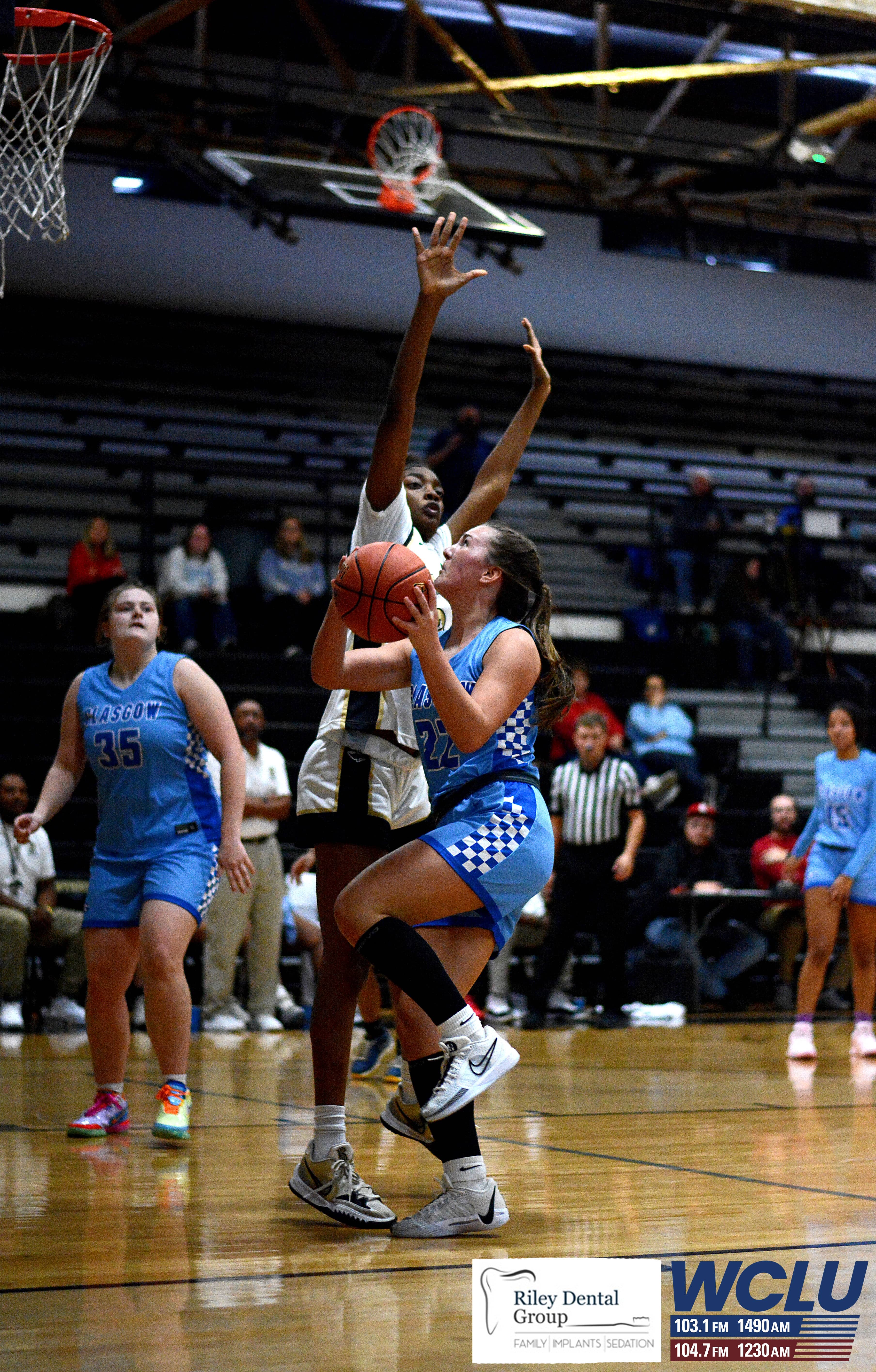 Glasgow’s Karli Hagan shoots a contested layup against Russellville. Glasgow won, 56-35. John Brown/WCLU Sports