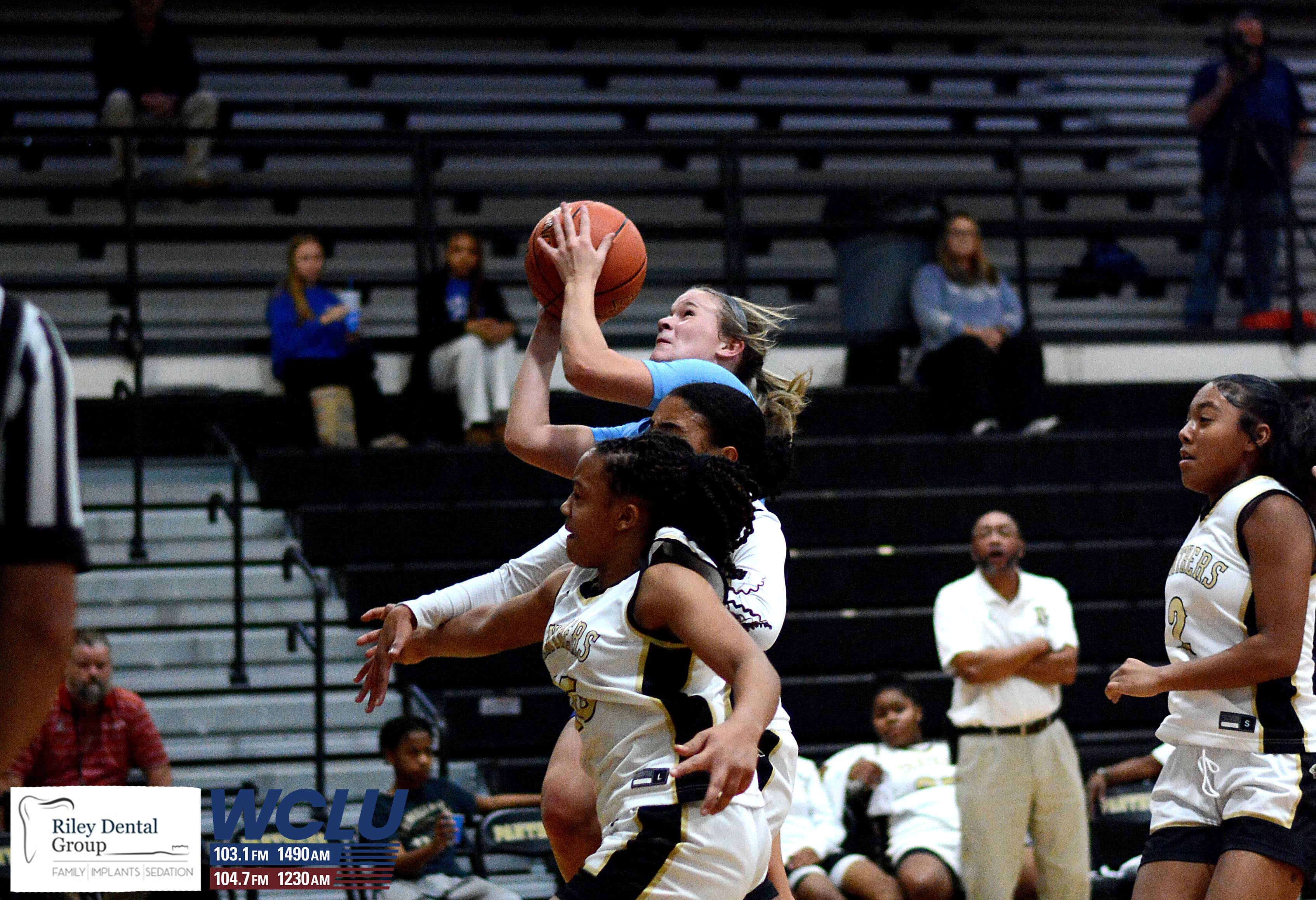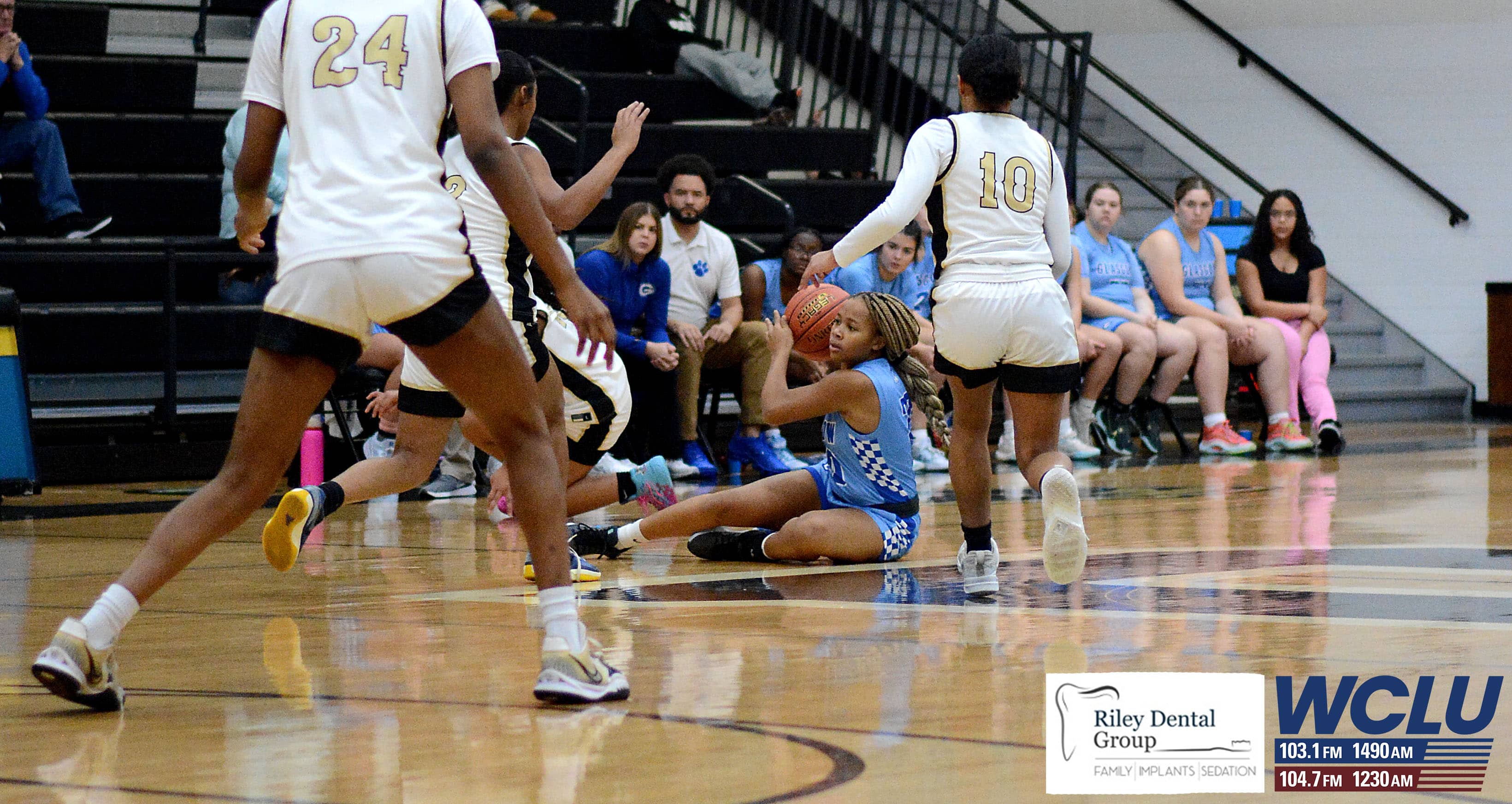 Glasgow’s NaTaya Lightfoot looks to pass after recovering a loose ball against Russellville. Glasgow won, 56-35. John Brown/WCLU Sports