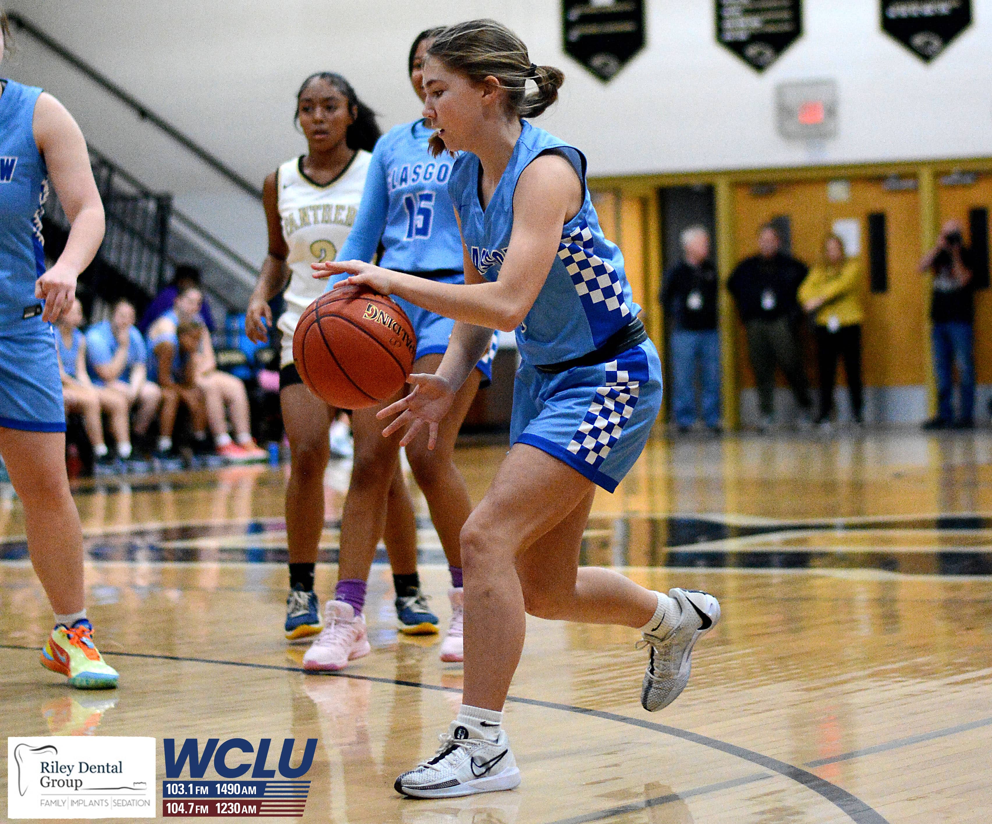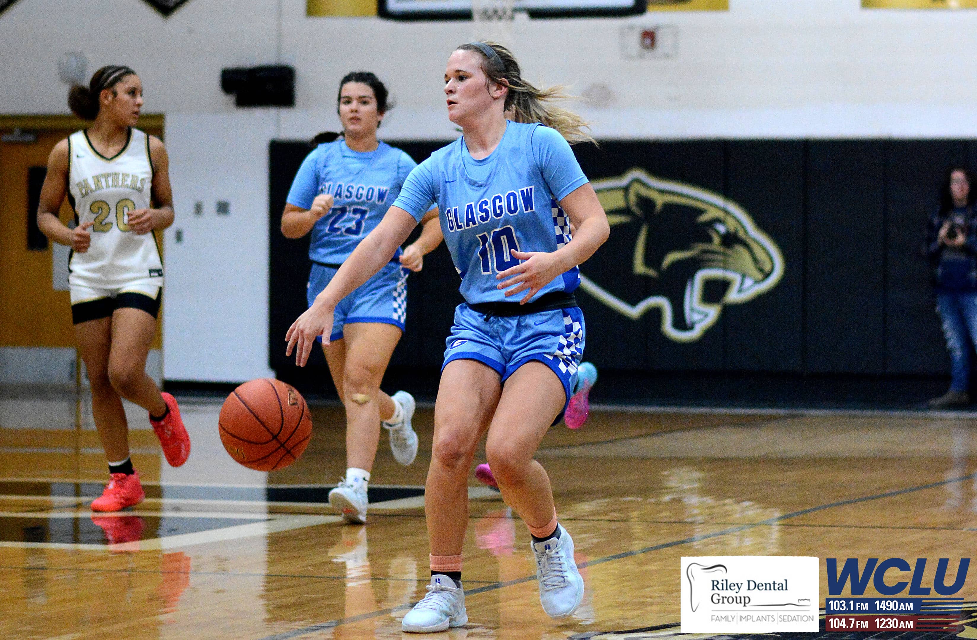 Glasgow’s Kayla Kirkpatrick dribbles up court against Russellville. Glasgow won, 56-35. John Brown/WCLU Sports