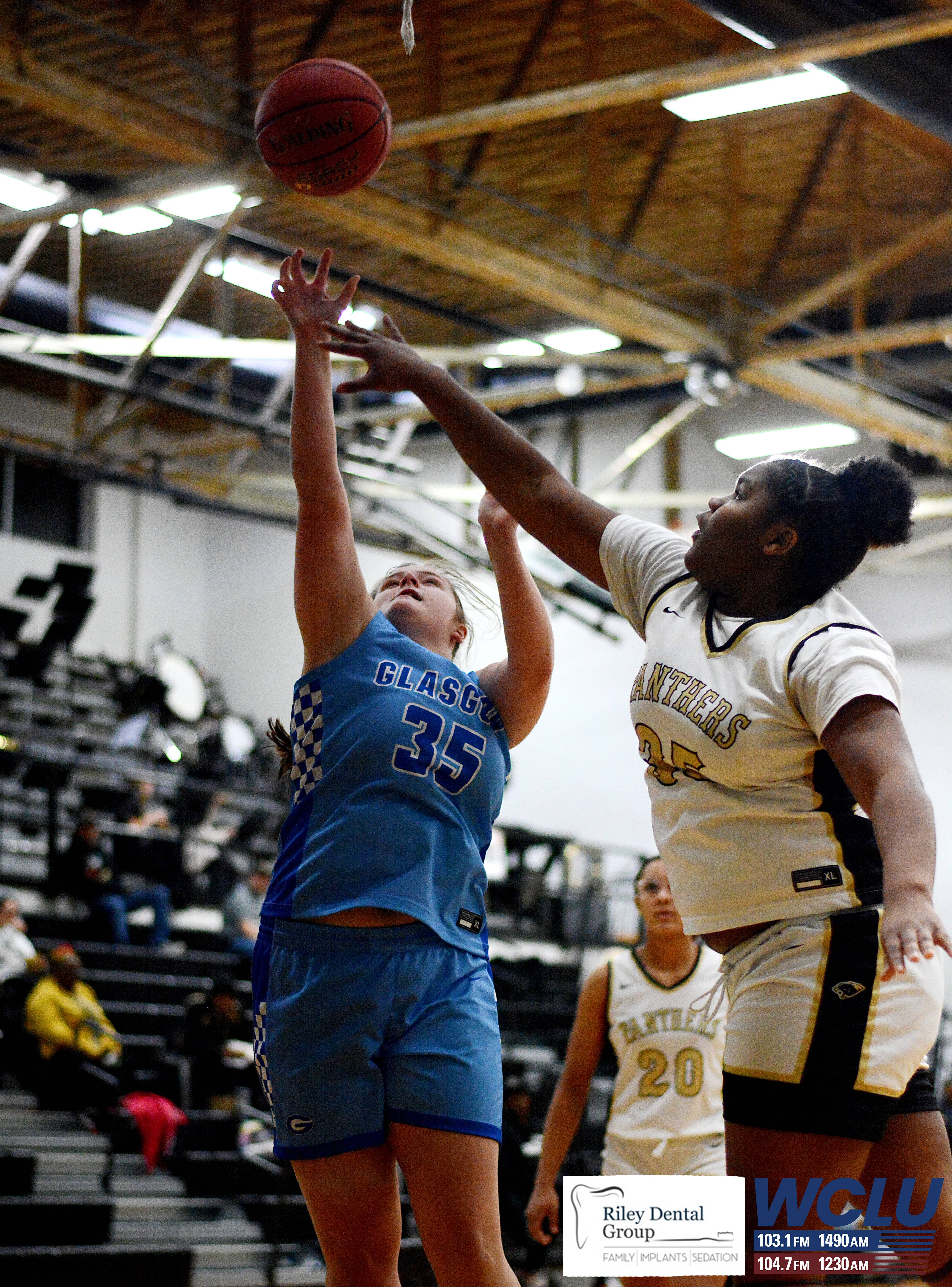 Glasgow’s Cynthia Austin grabs a rebound against Russellville. Glasgow won, 56-35. John Brown/WCLU Sports