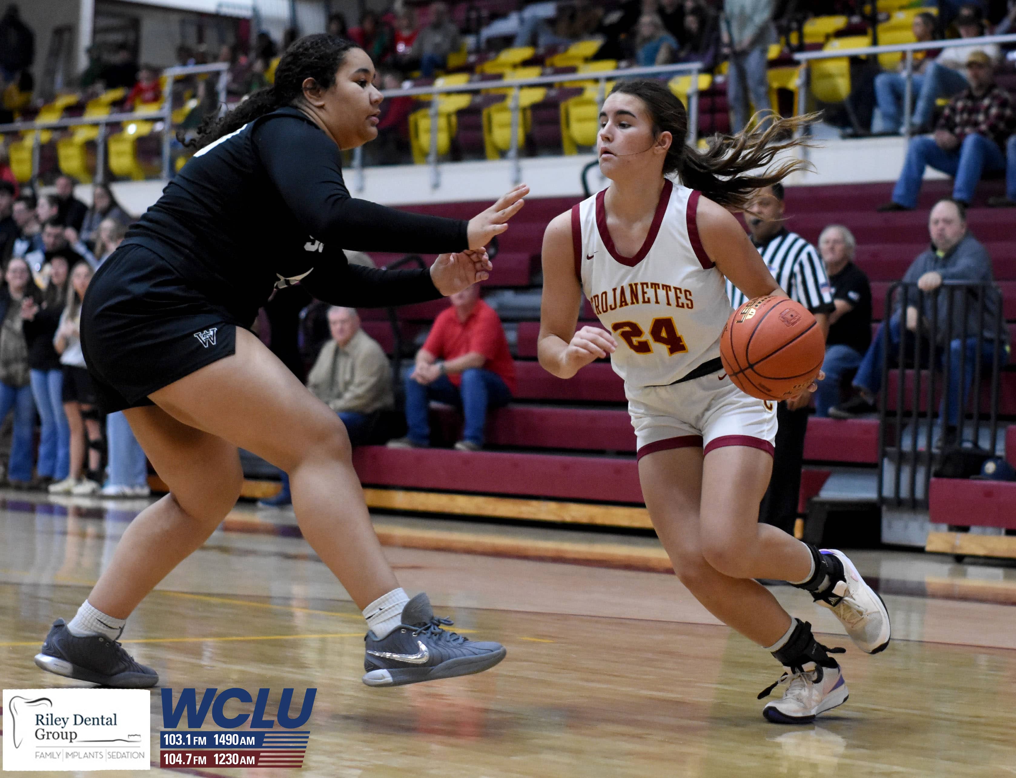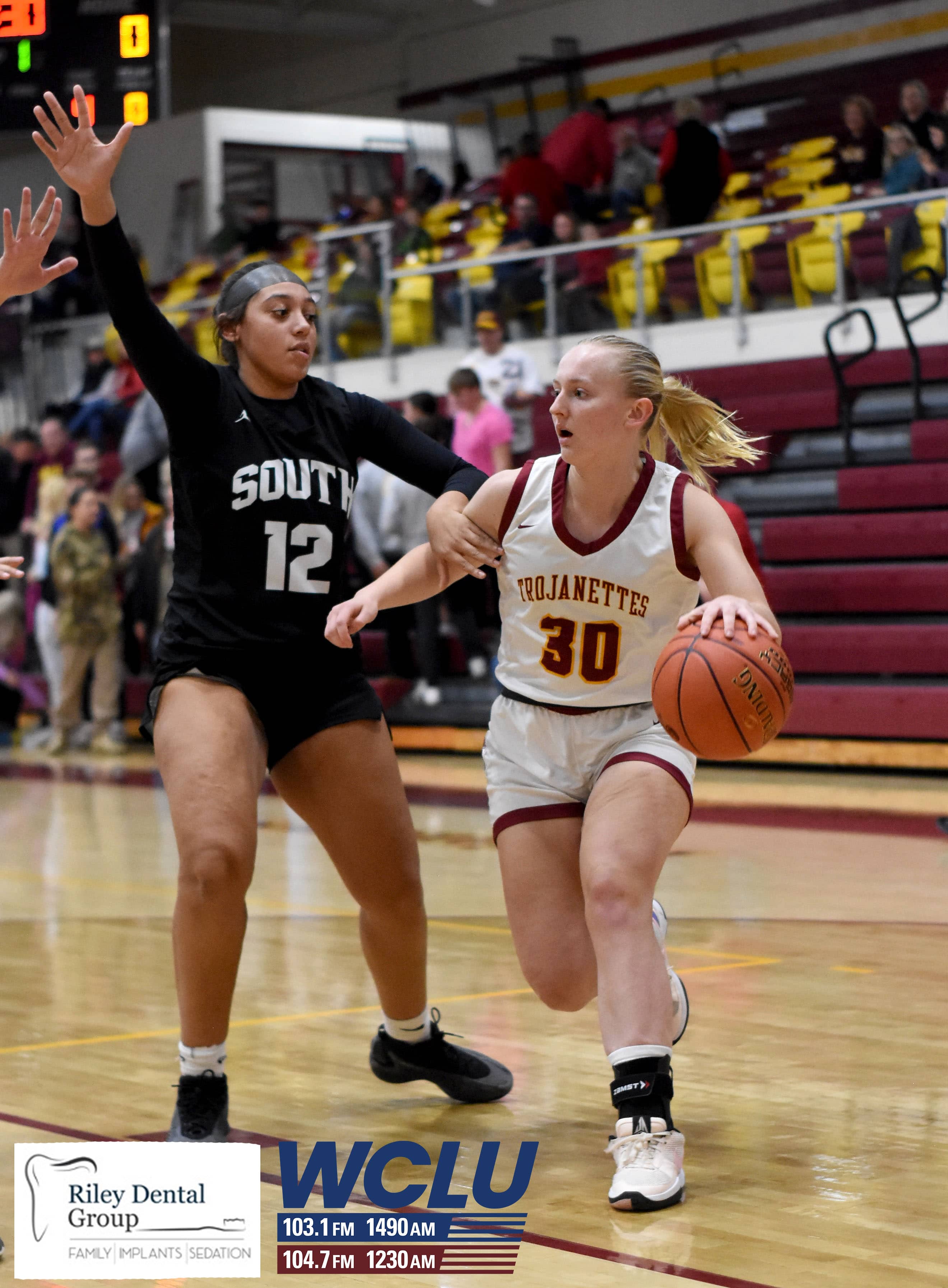 Barren County’s Addy Slagle drives against South Warren on Homecoming night. The Trojanettes won, 49-38. James Brown/WCLU Sports