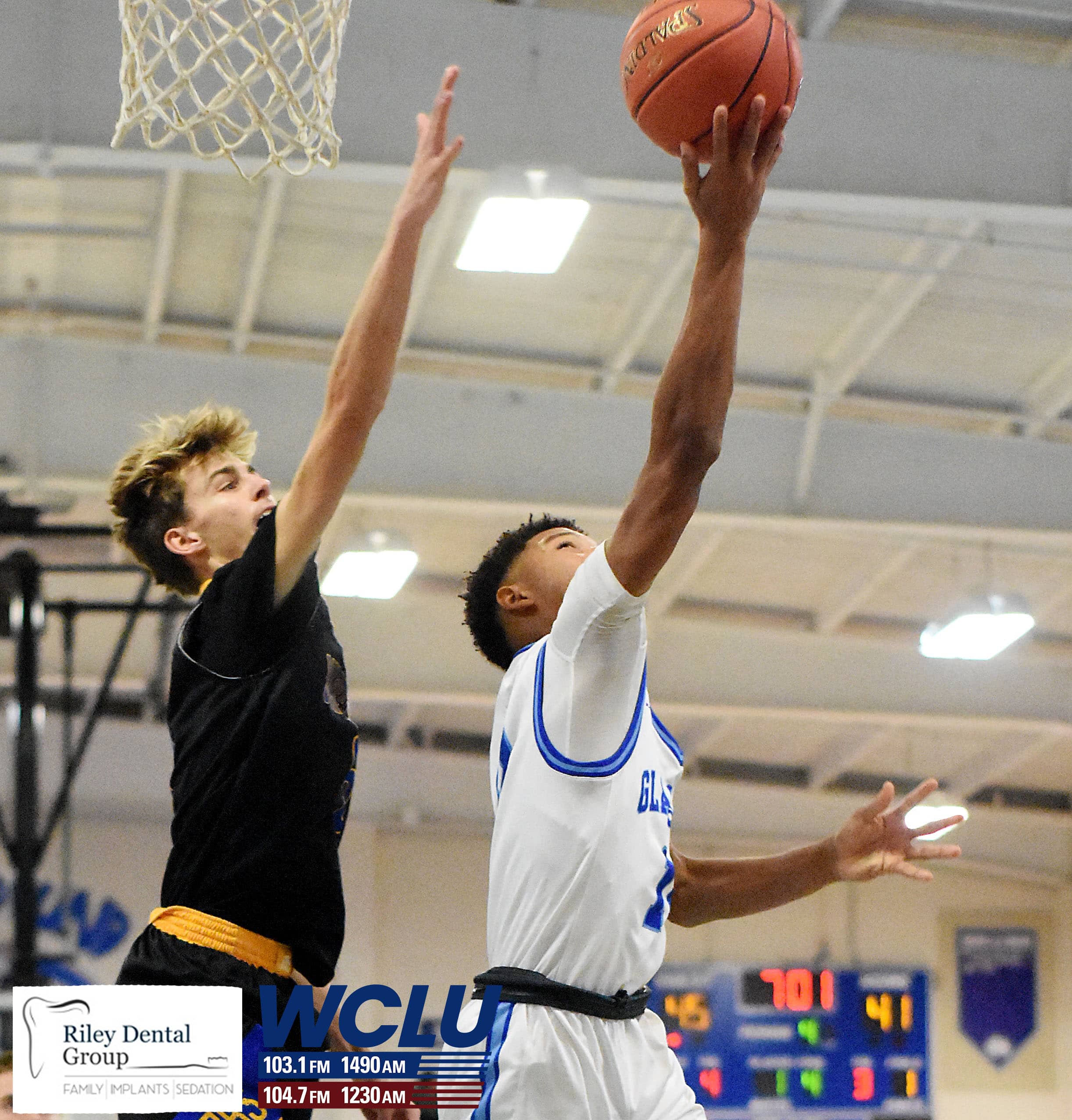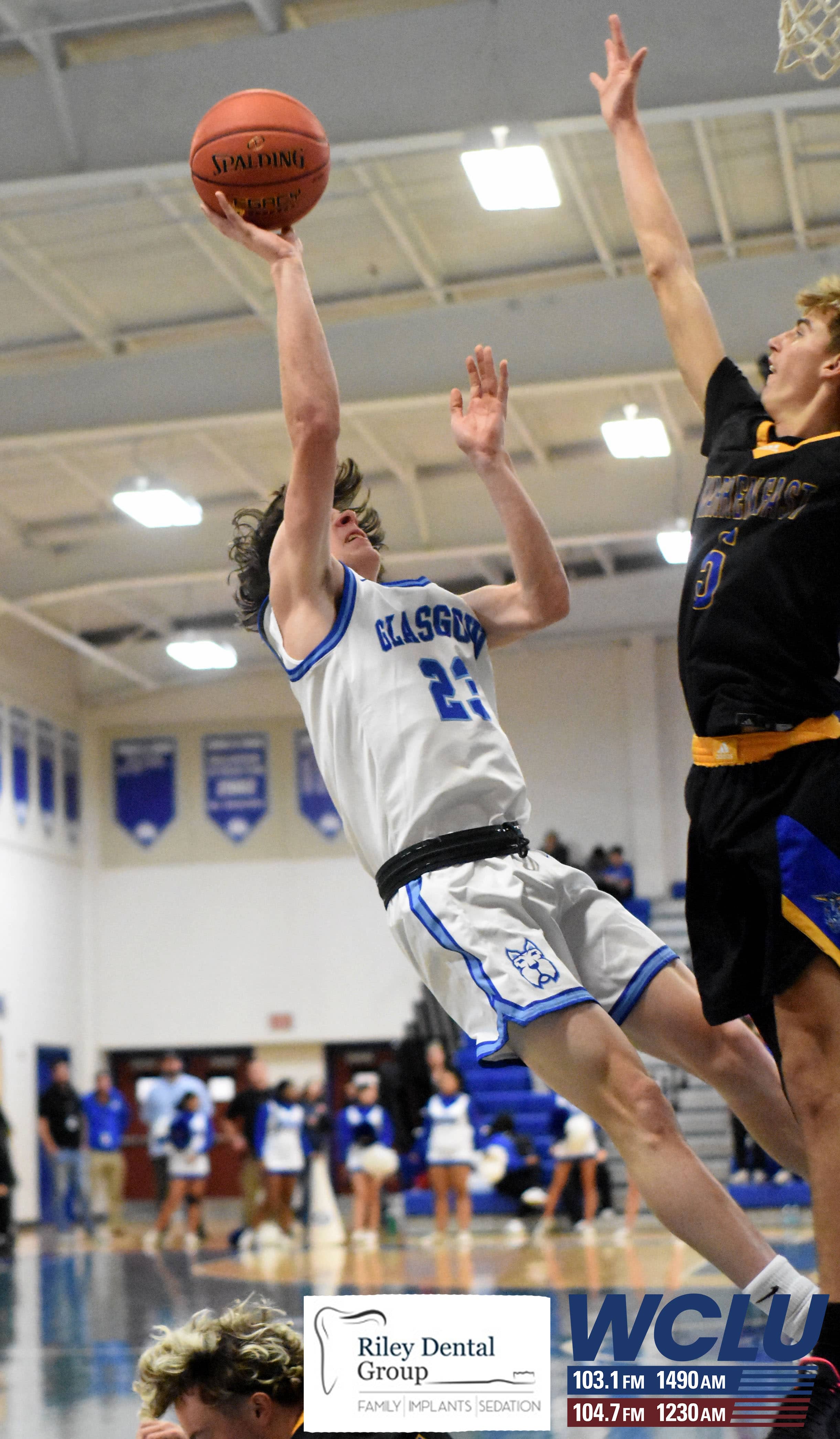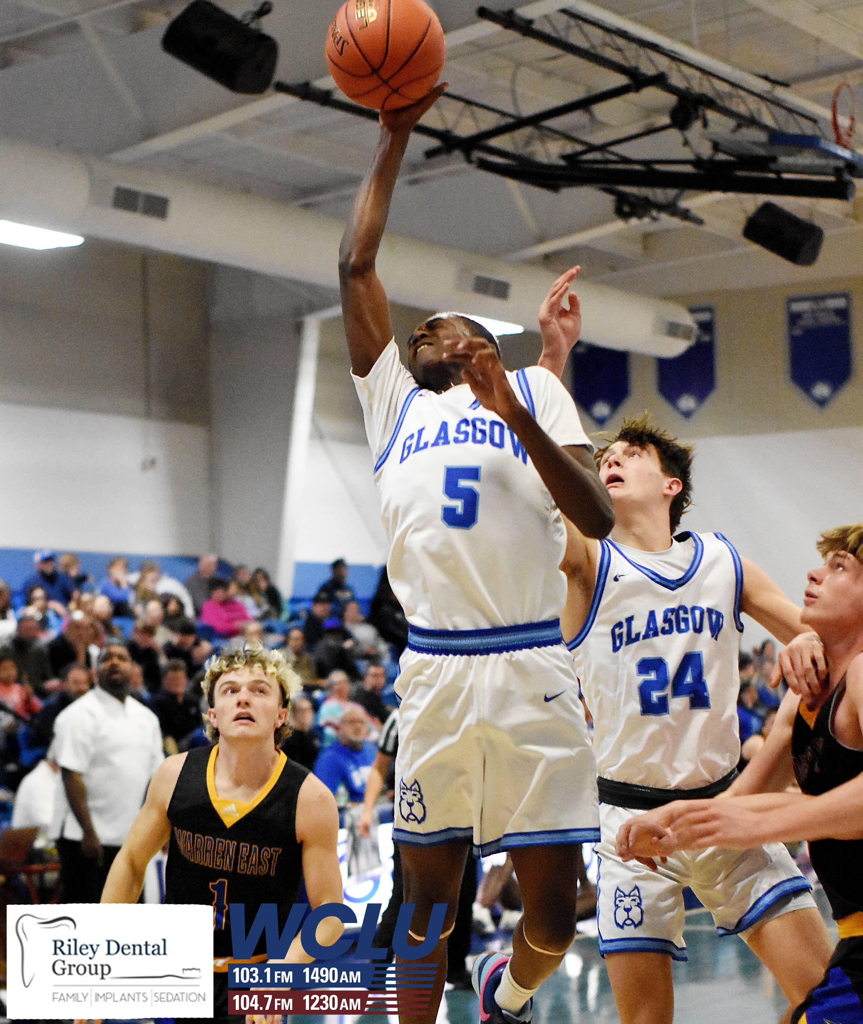 Glasgow’s Grayson Bartley shoots a layup against Warren East in a 15th District contest. The Scotties won, 75-71, in overtime. James Brown/WCLU Sports