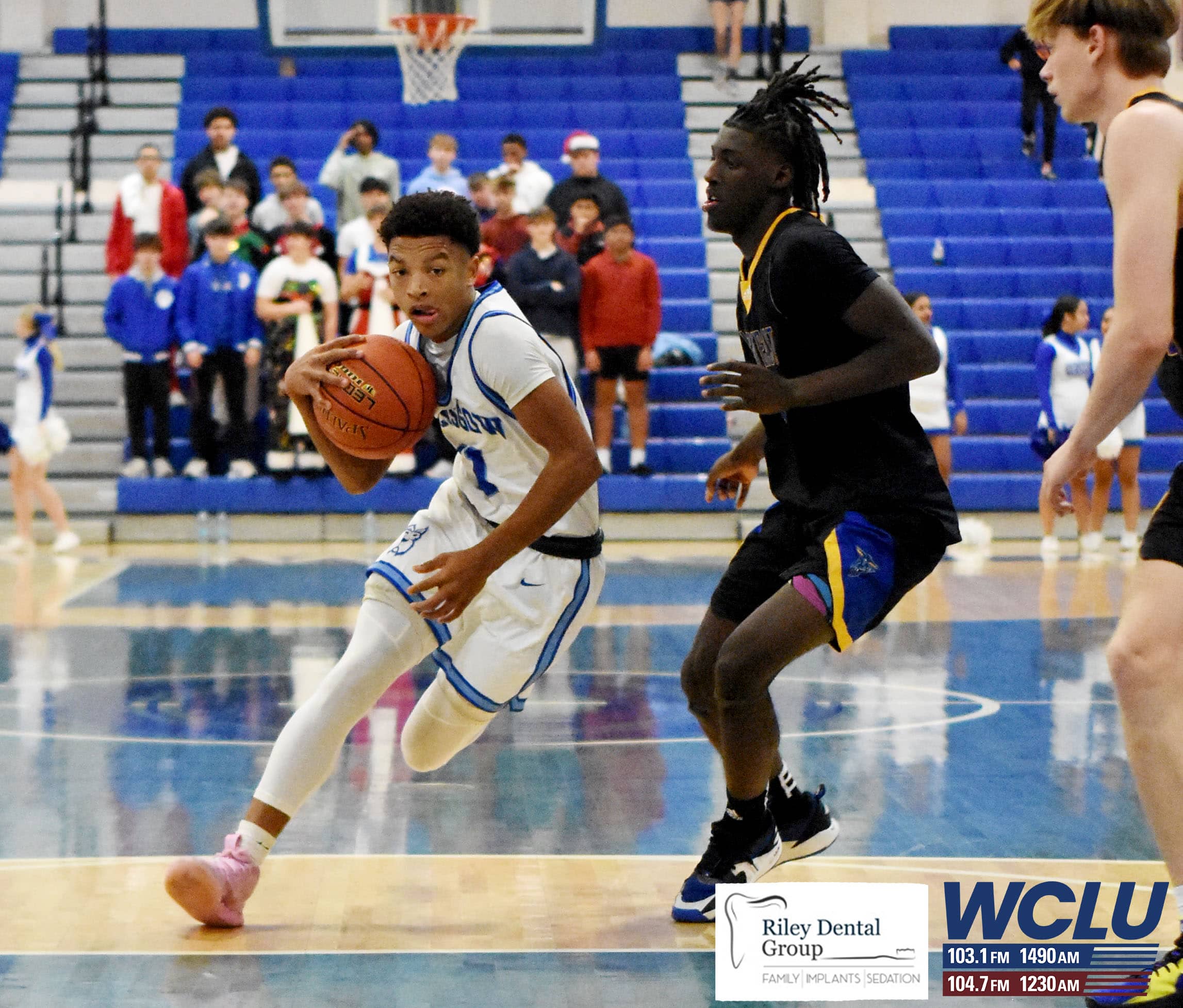 Glasgow’s Jaylen Bradley drives the lane against Warren East in a 15th District contest. The Scotties won, 75-71, in overtime. James Brown/WCLU Sports