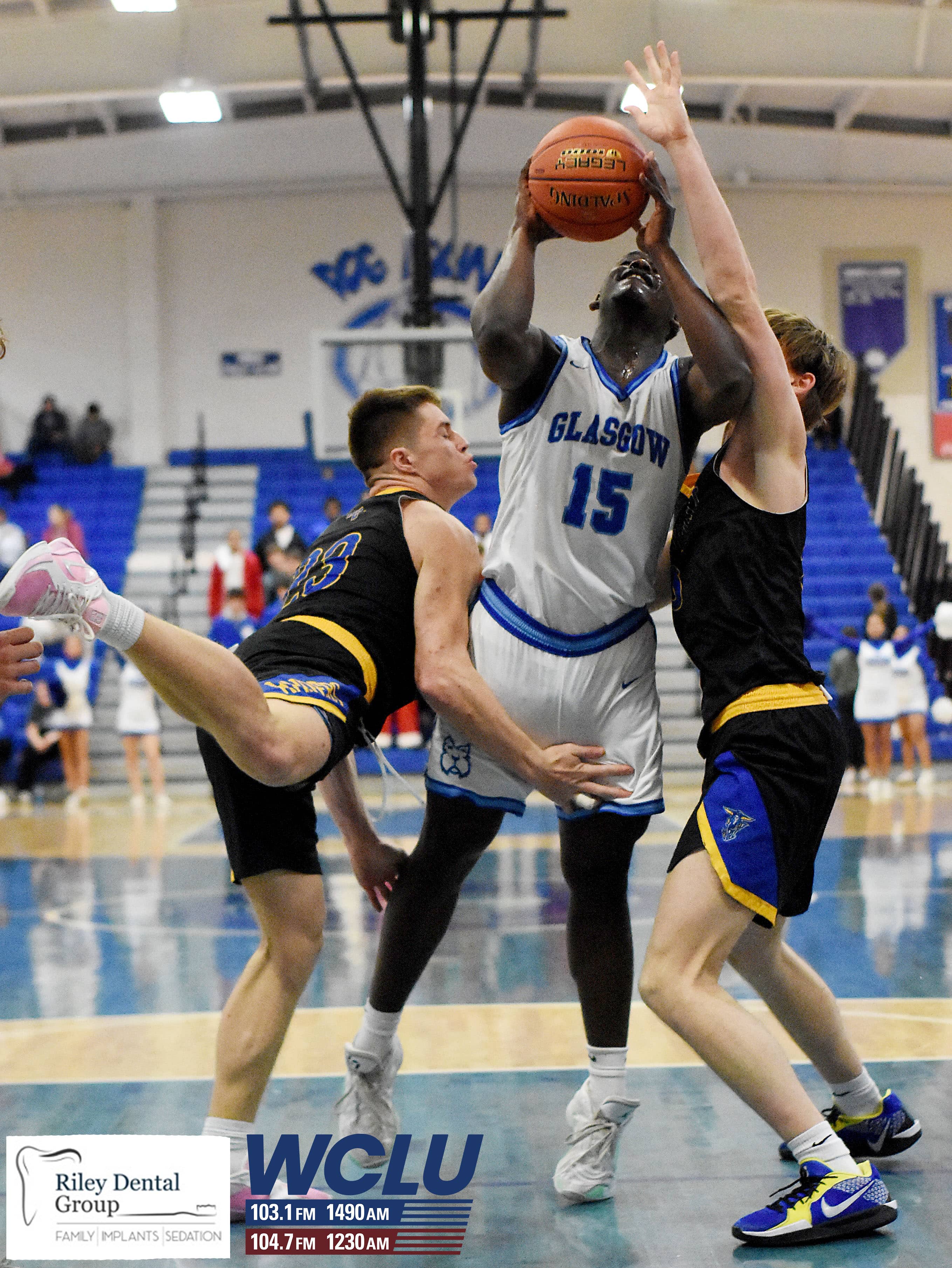 Glasgow’s Jeremiah Driver is fouled as he shoots in the lane against Warren East in a 15th District contest. The Scotties won, 75-71, in overtime. James Brown/WCLU Sports