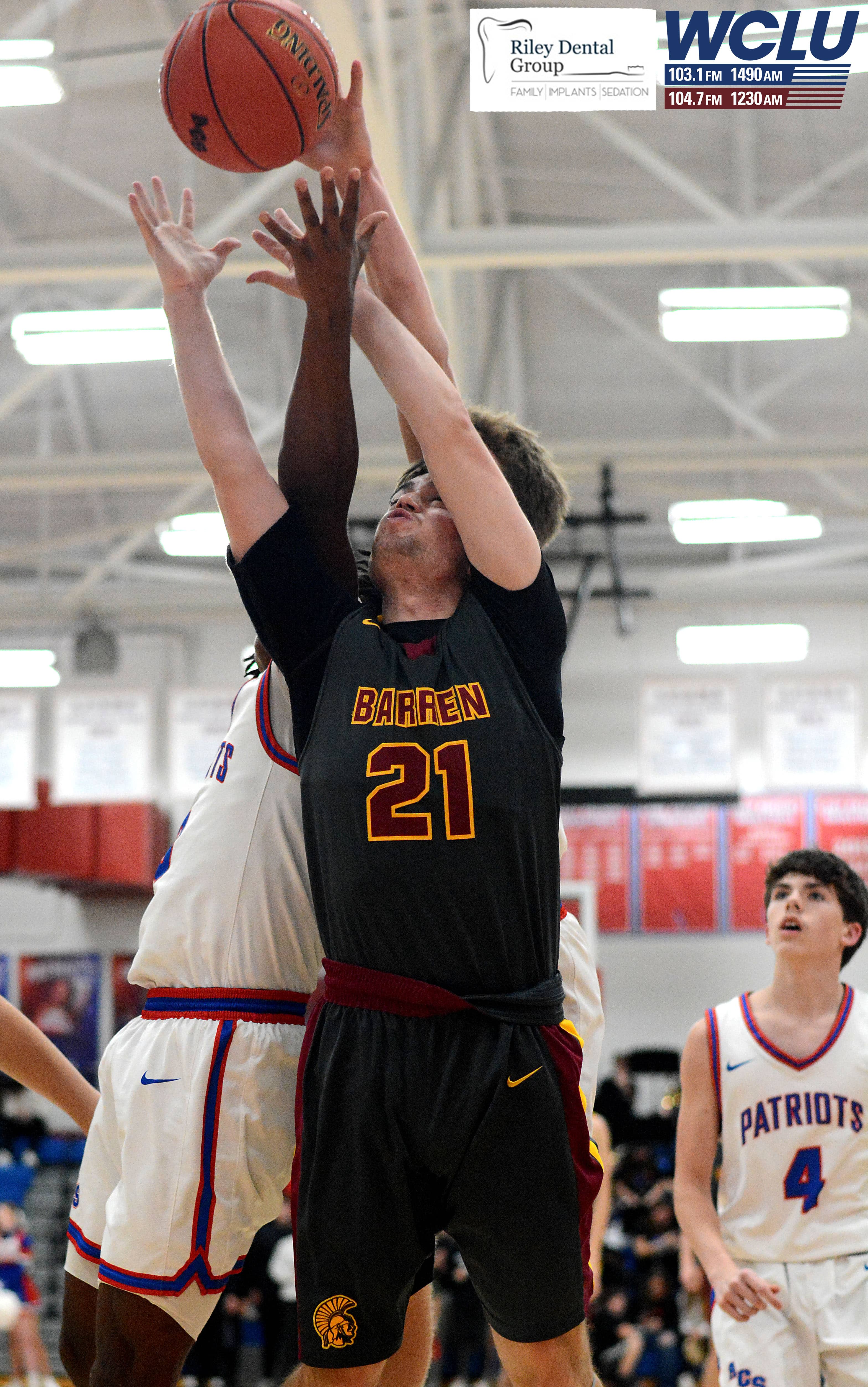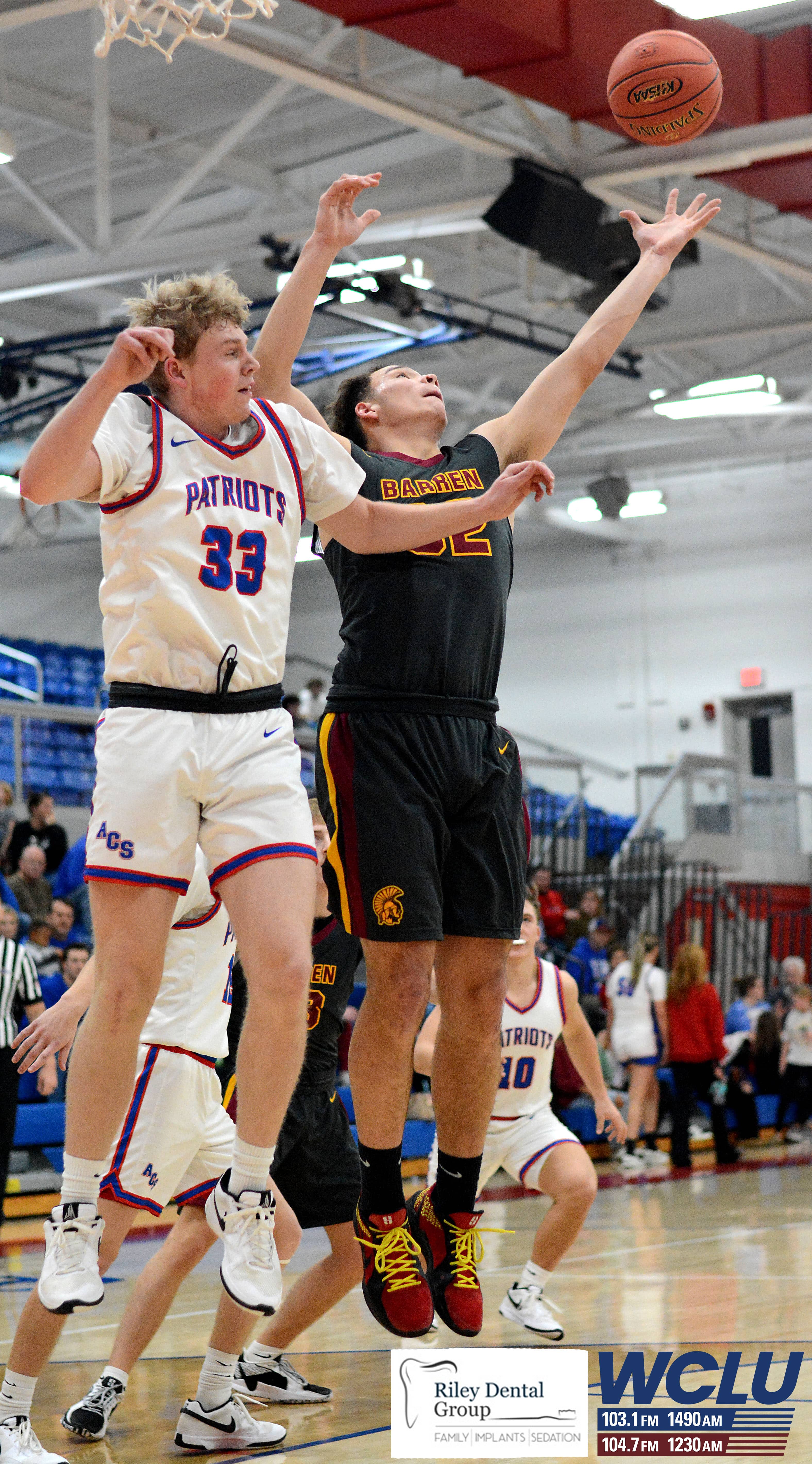 Barren County’s Jackson Reece battles for a rebound against Allen County-Scottsville. The Trojans won, 62-48. John Brown/WCLU Sports