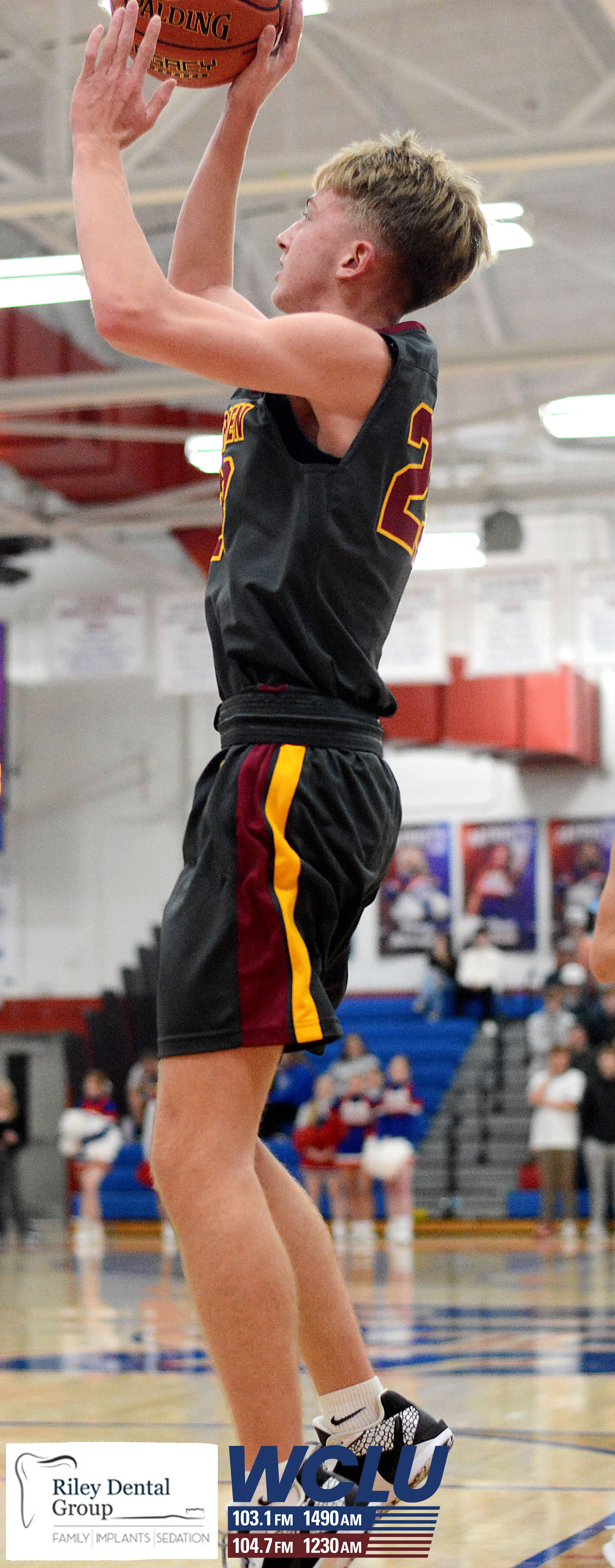 Barren County’s Kade Hardy shoots a jumper against Allen County-Scottsville. The Trojans won, 62-48. John Brown/WCLU Sports
