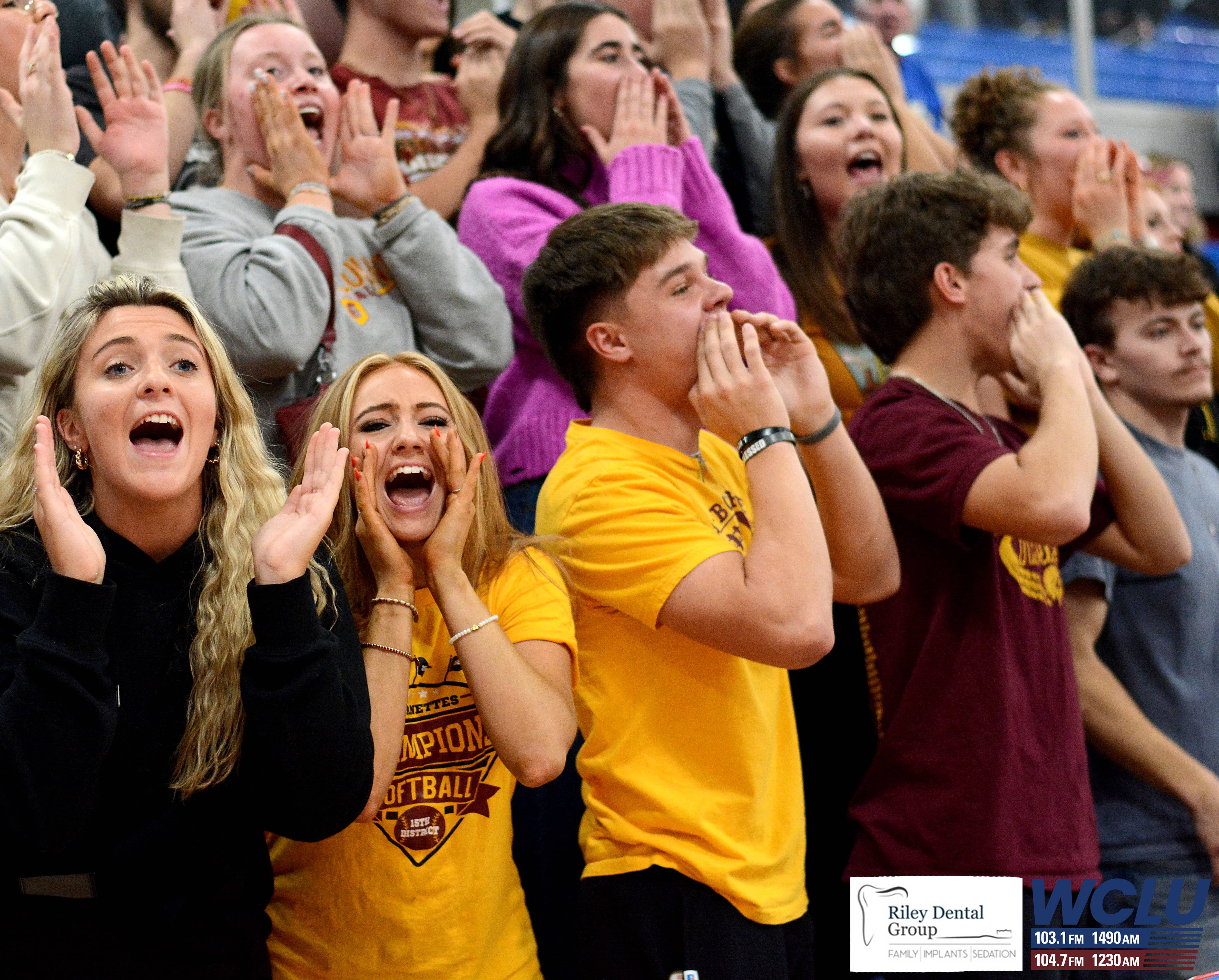 Barren County’s student section cheers as two students yell towards the opposing student section against Allen County-Scottsville. The Trojans won, 62-48. John Brown/WCLU Sports