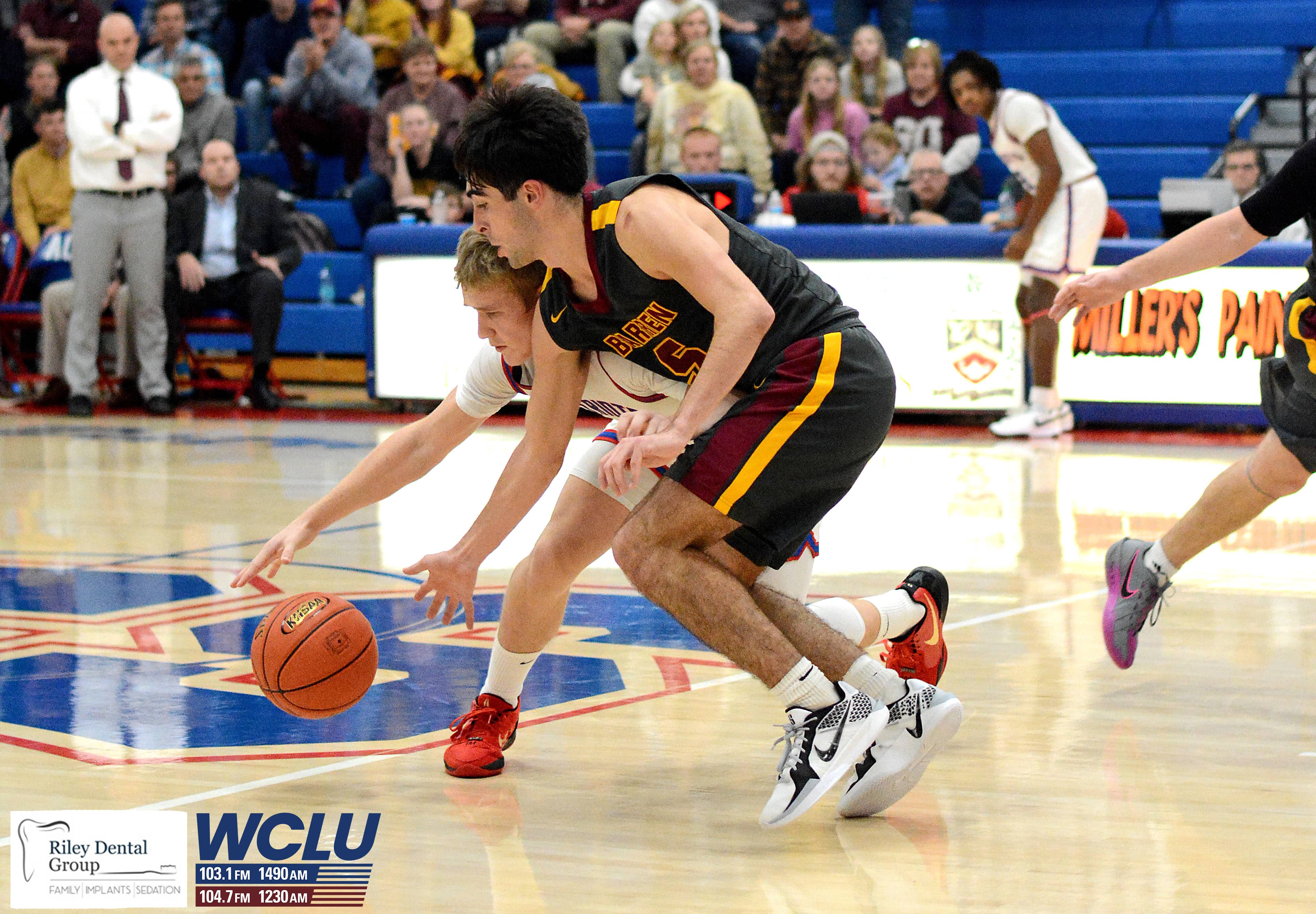 Barren County’s Jackson Reece battles for control of the ball against Allen County-Scottsville. The Trojans won, 62-48. John Brown/WCLU Sports