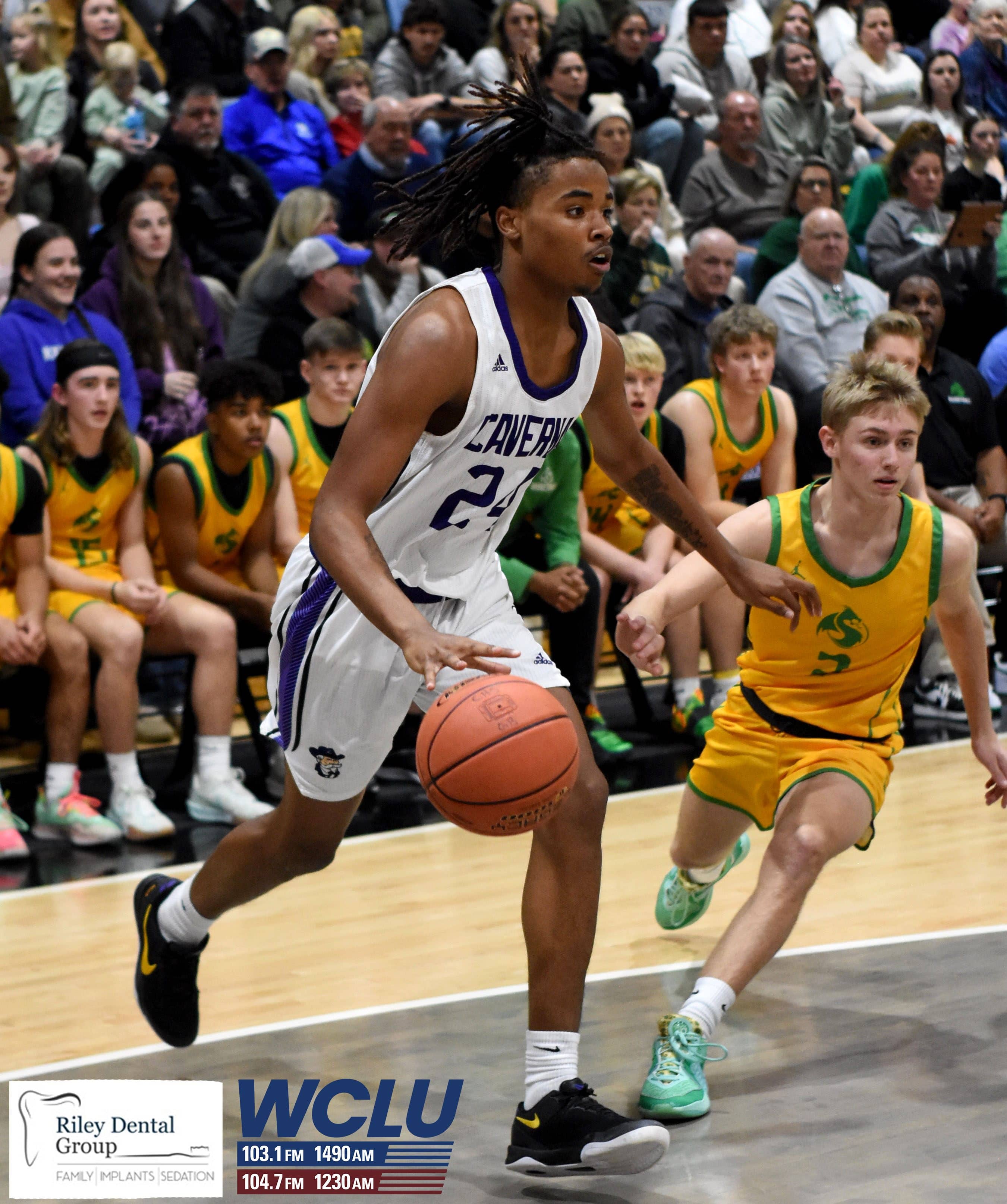 Caverna’s Jaylin Craine drives against Green County in a Fifth Region All “A” Tournament contest. The Colonels lost, 51-49. James Brown/WCLU Sports