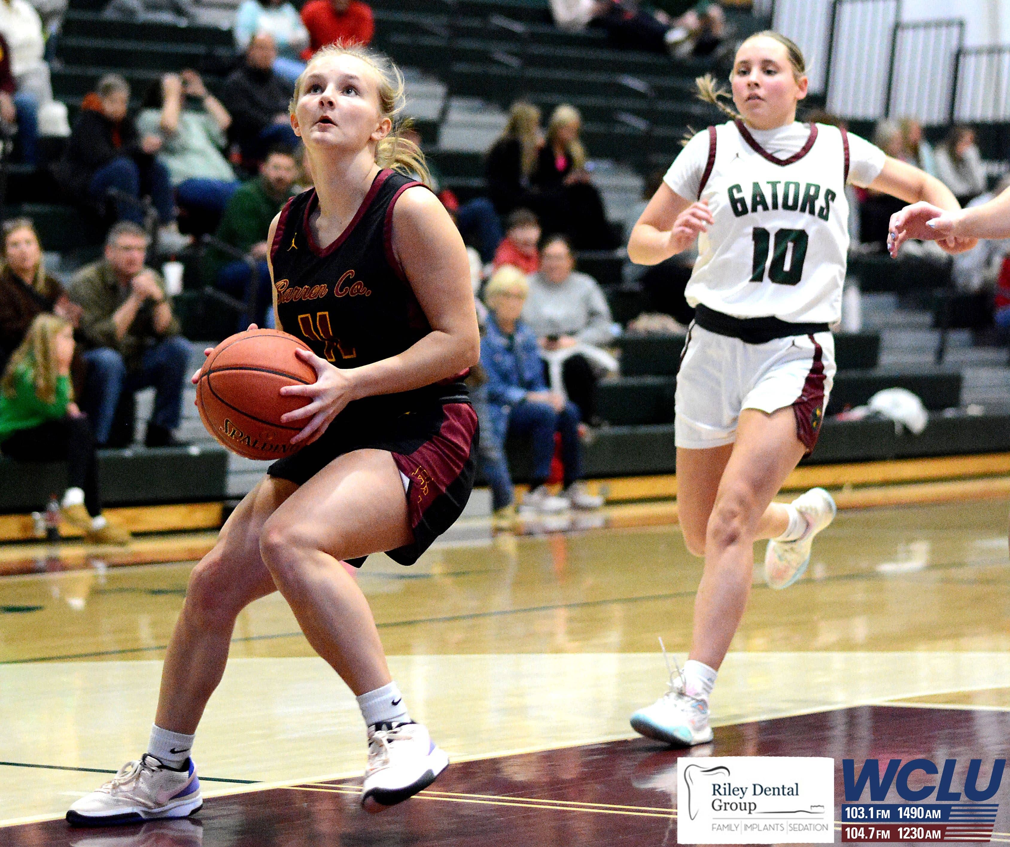 Barren County’s Addy Slagle dribbles up court on a fast break against Greenwood. Barren County won, 60-35. John Brown/WCLU Sports