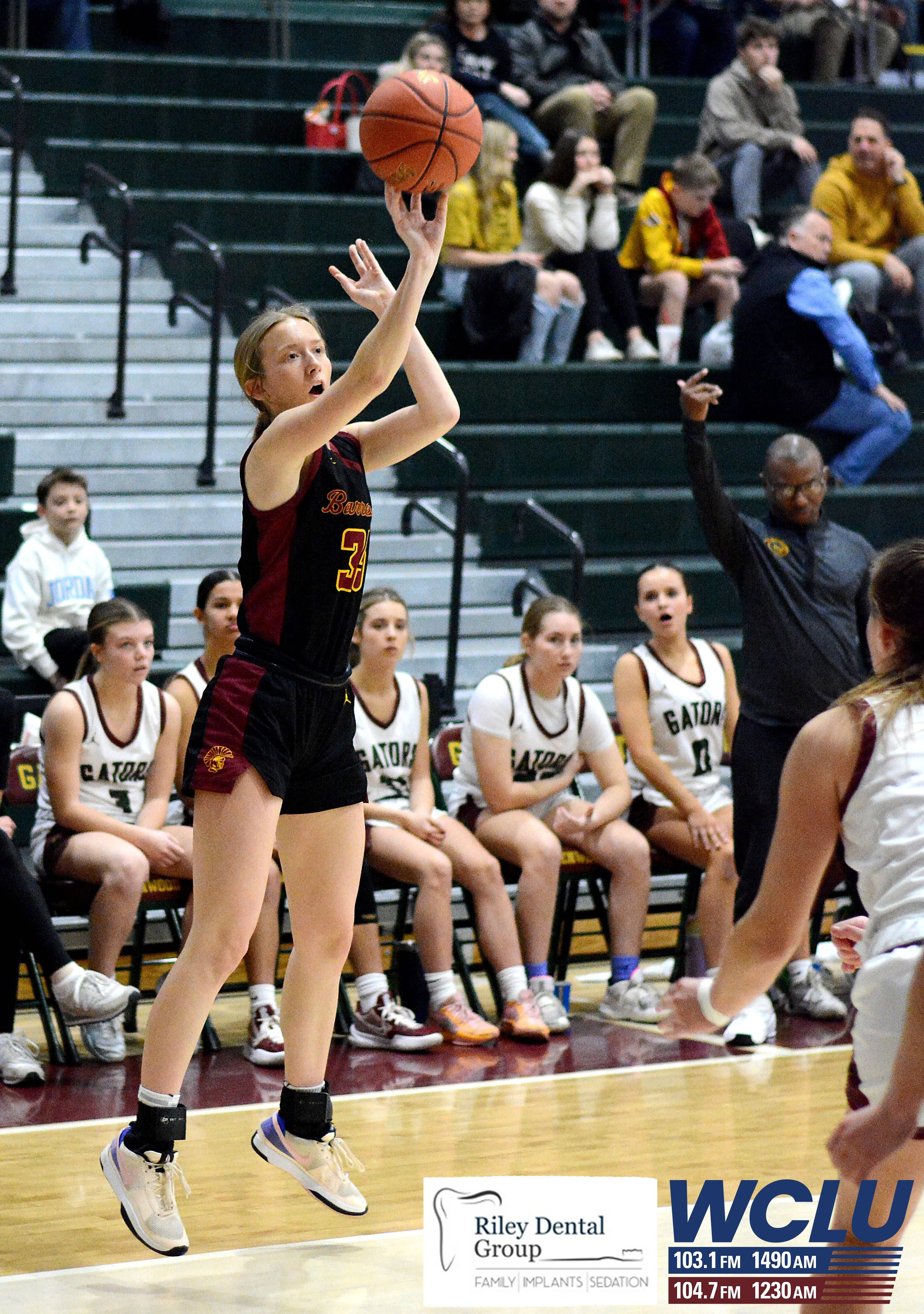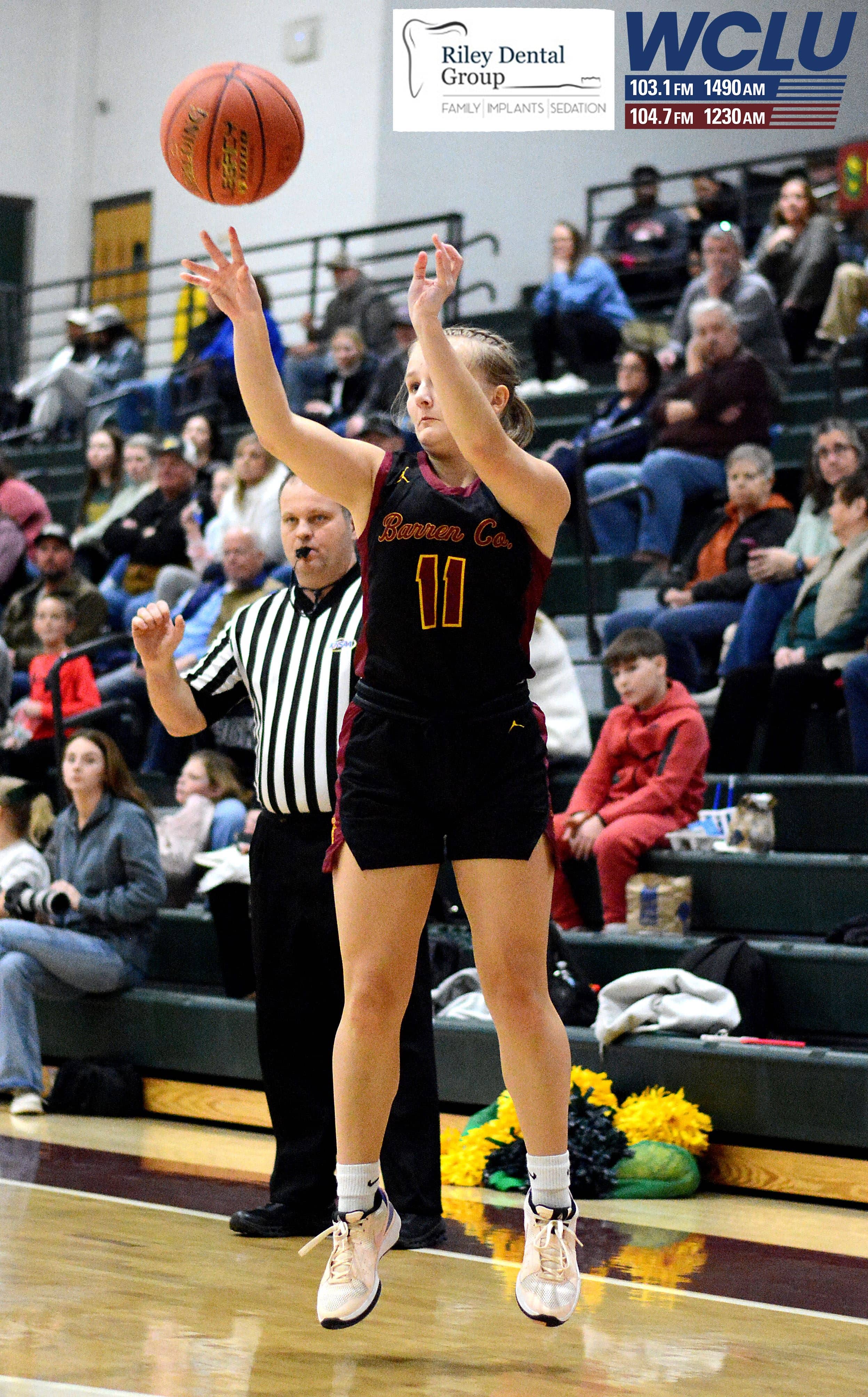 Barren County’s Addy Slagle shoots a 3-pointer against Greenwood. Barren County won, 60-35. John Brown/WCLU Sports