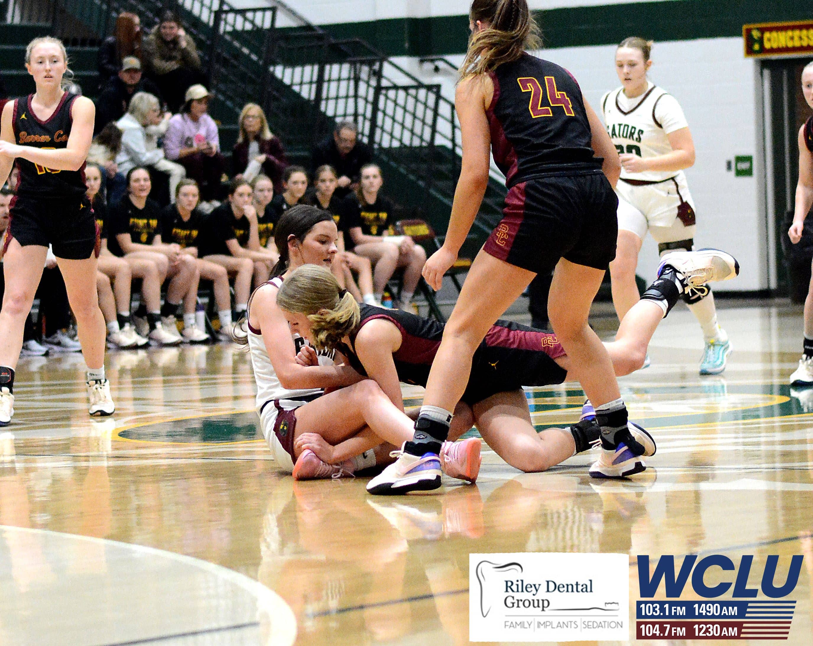 Barren County’s Mahalia Burton battles for a loose ball against Greenwood. Barren County won, 60-35. John Brown/WCLU Sports