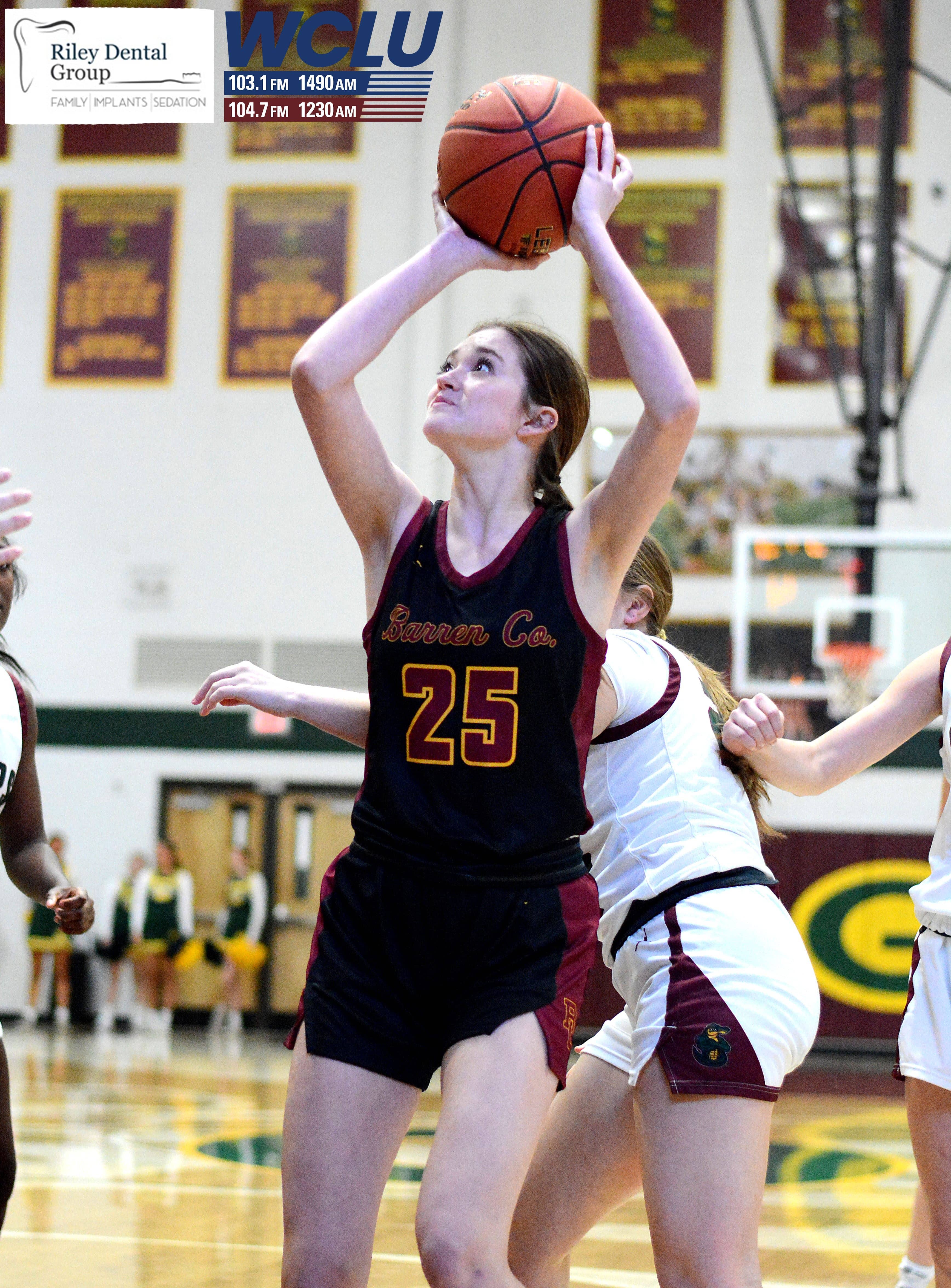 Barren County’s Reagan Griffiths looks to shoot against Greenwood. Barren County won, 60-35. John Brown/WCLU Sports