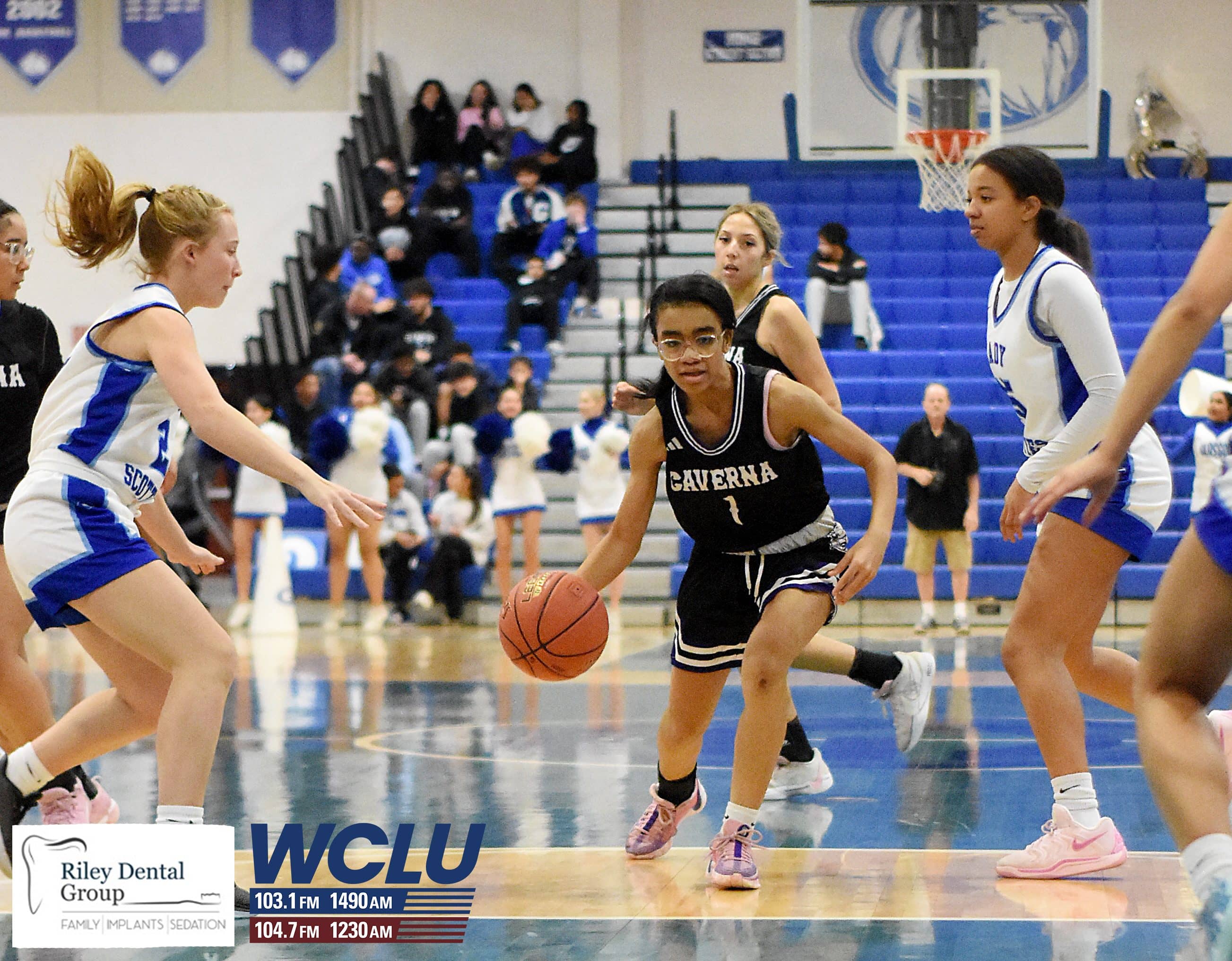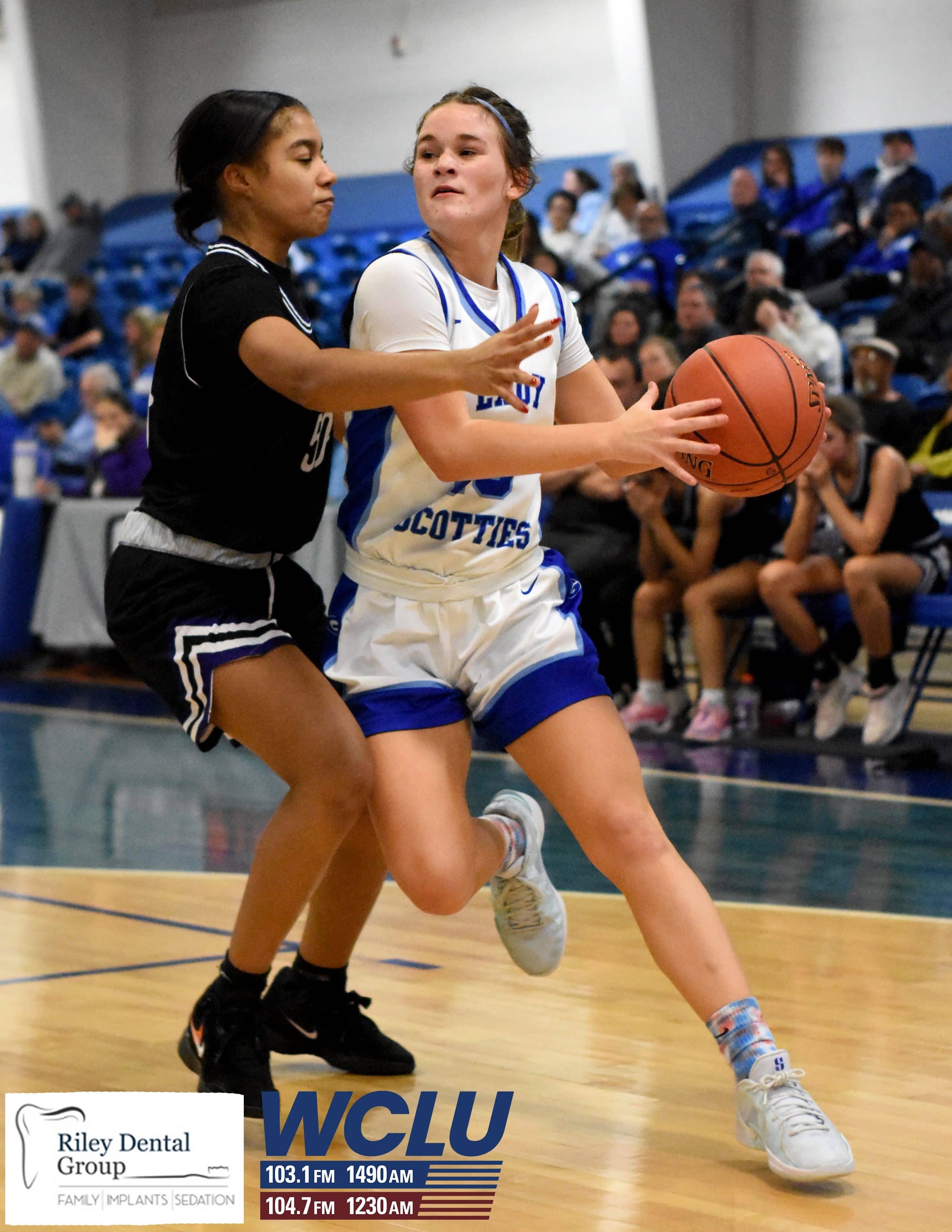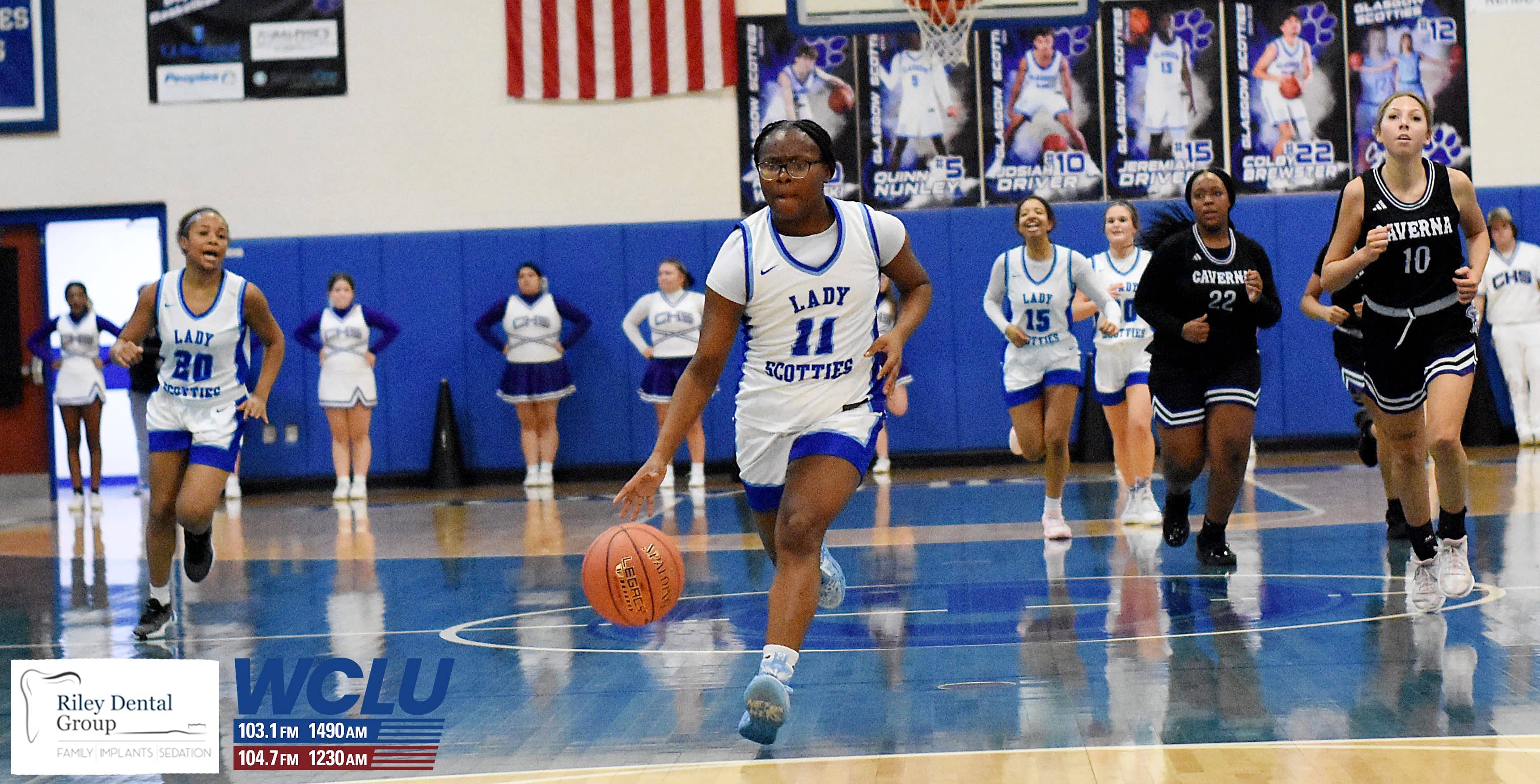 Glasgow’s Jayla Craine dribbles down court after getting a steal against Caverna. The Lady Scotties beat the Lady Colonels, 71-35. James Brown/WCLU Sports