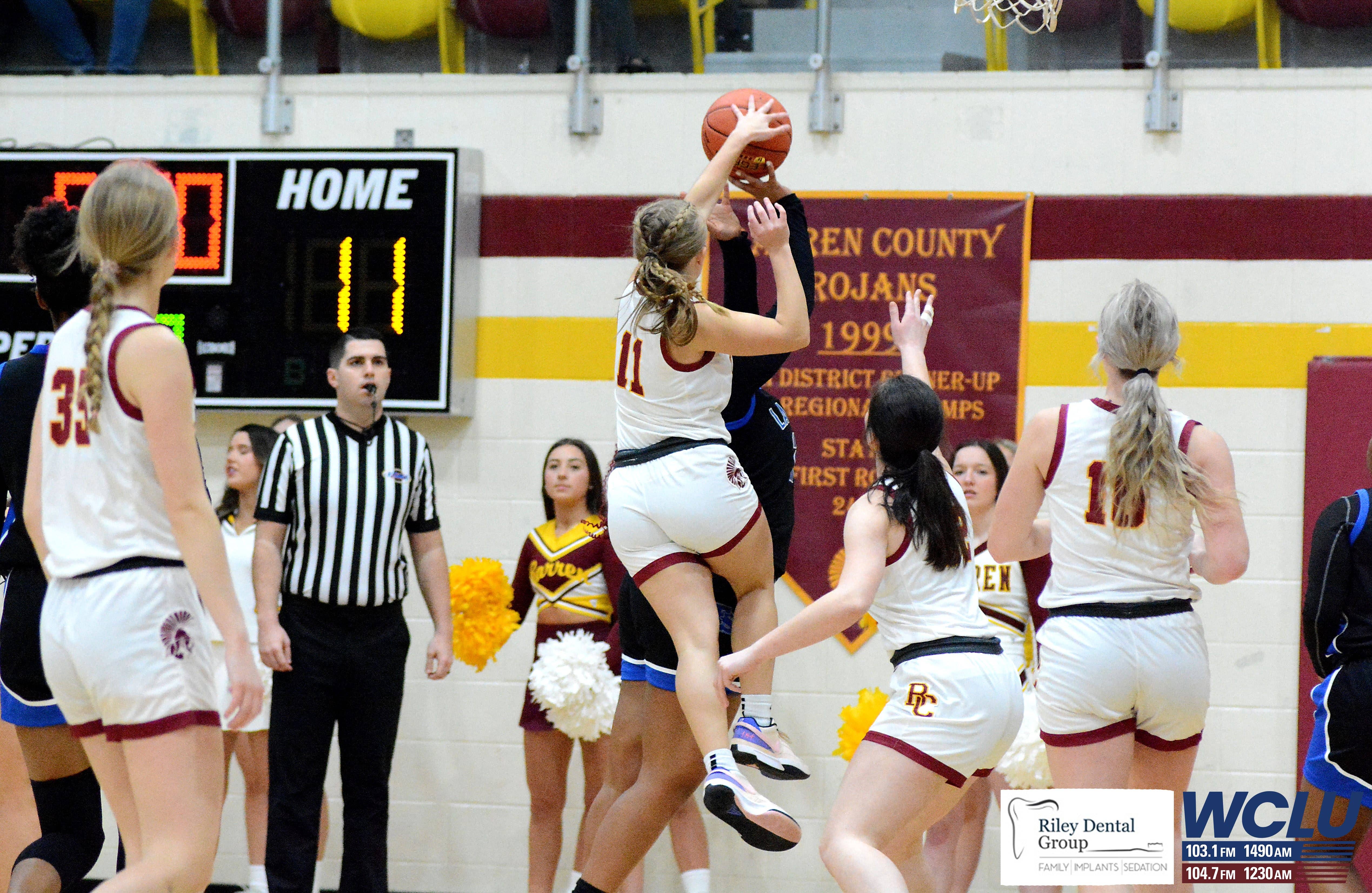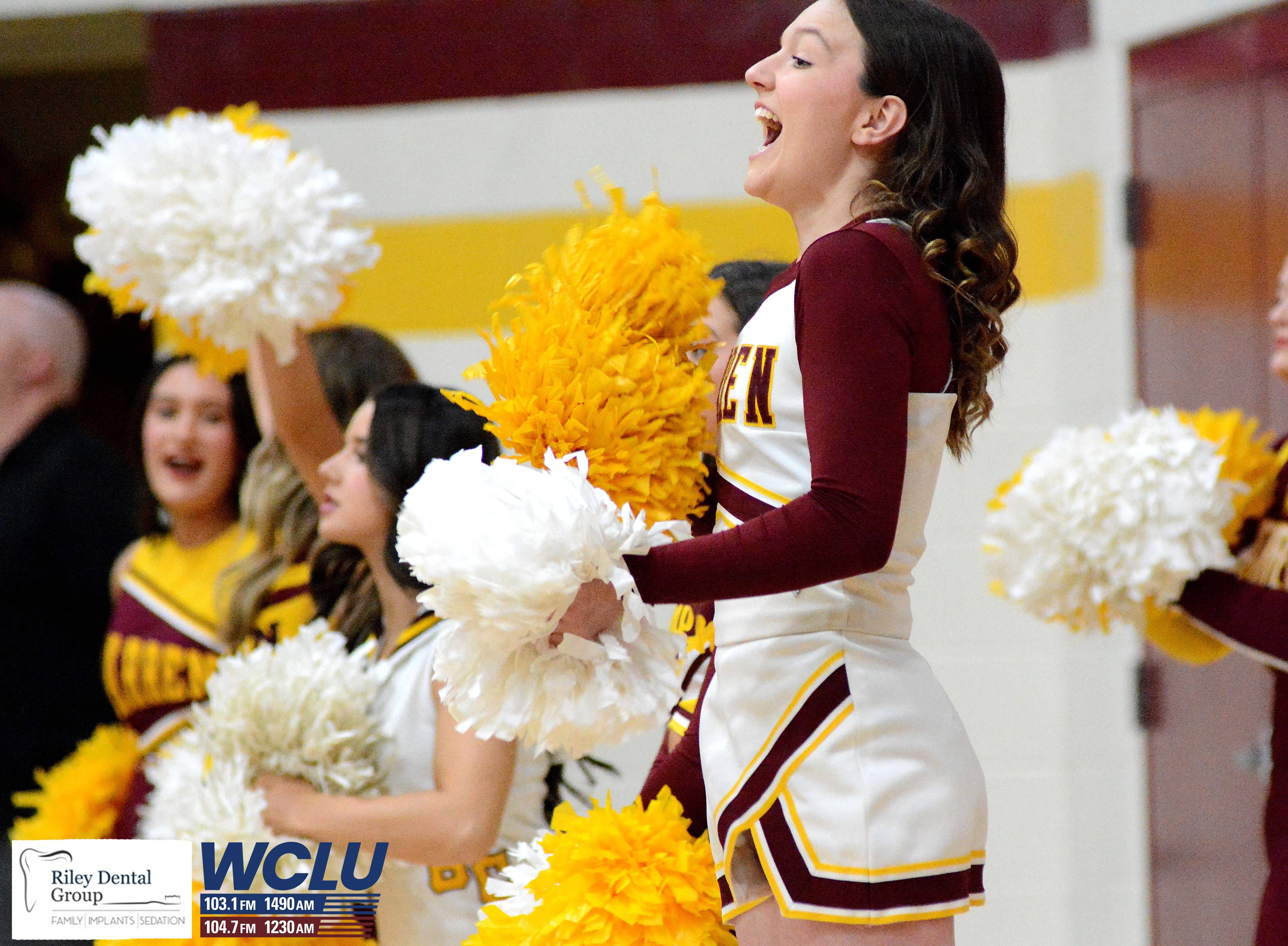 Barren County cheerleaders celebrate after a made basket against Franklin-Simpson. Barren County lost, 55-49. John Brown/WCLU Sports