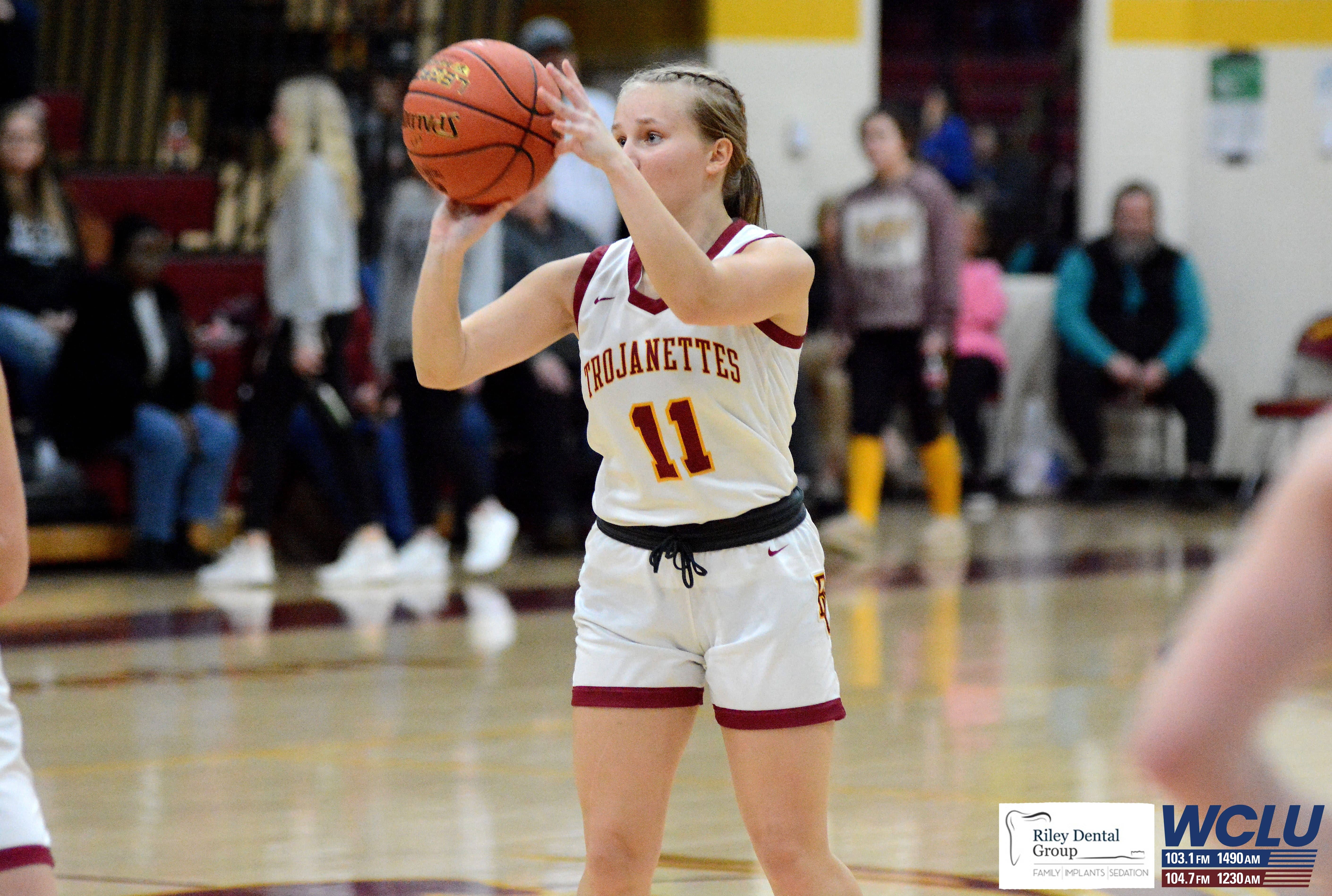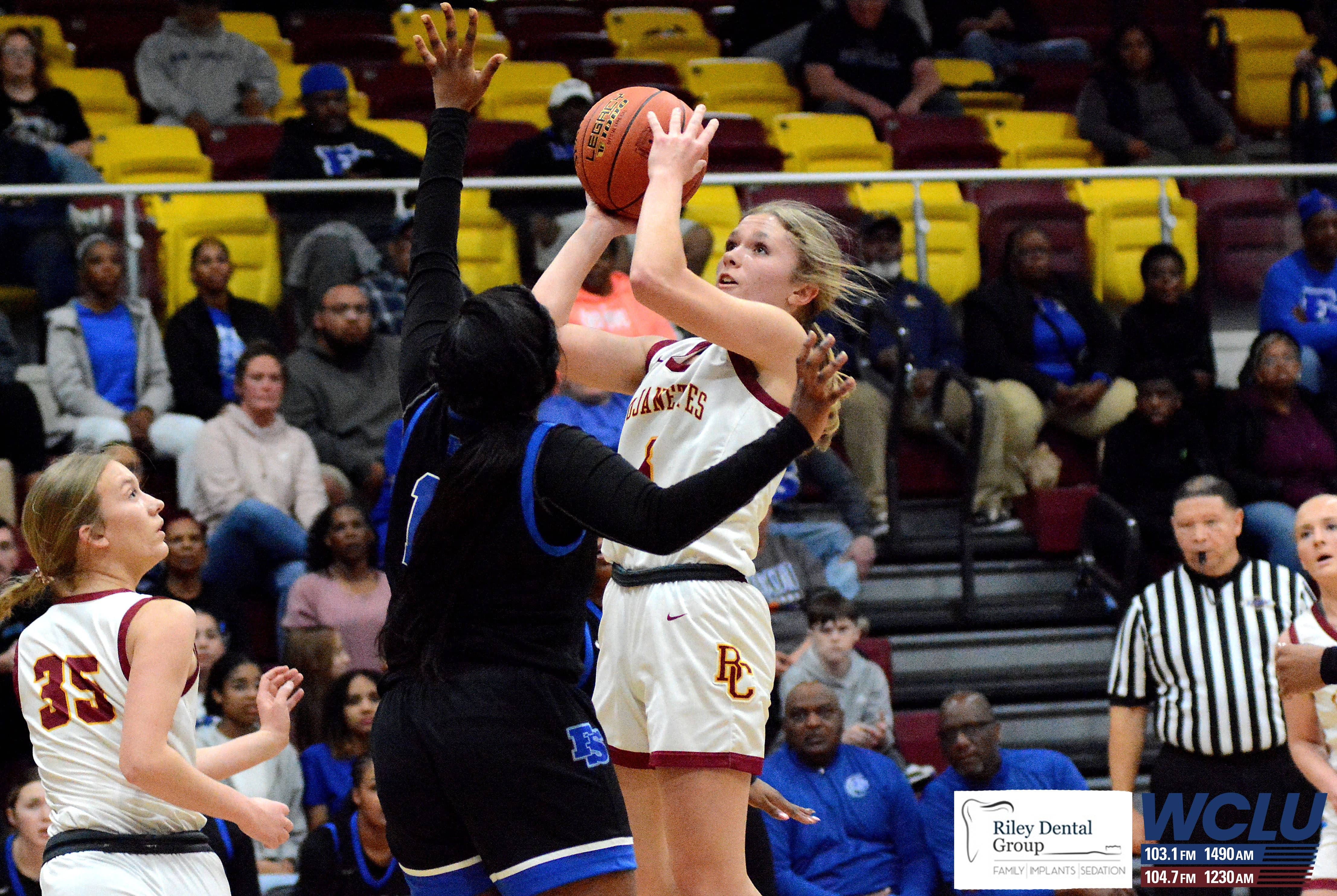 Barren County’s Addy Slagle shoots a 3-pointer against Franklin-Simpson. Barren County lost, 55-49. John Brown/WCLU Sports