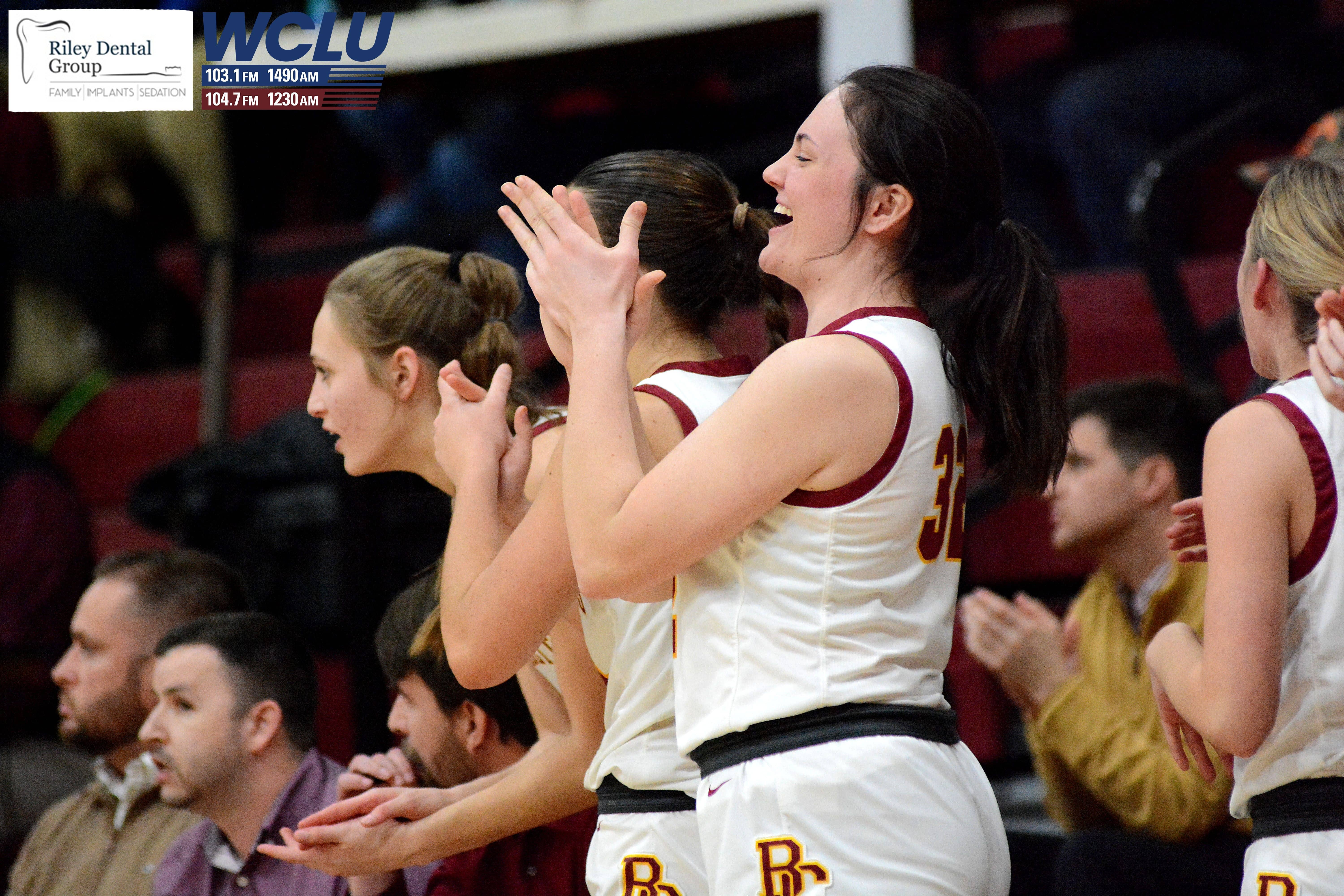 Barren County’s Riley Wilson, Shelby Byrd, and Hannah Bragg celebrate after a made basket against Franklin-Simpson. Barren County lost, 55-49. John Brown/WCLU Sports
