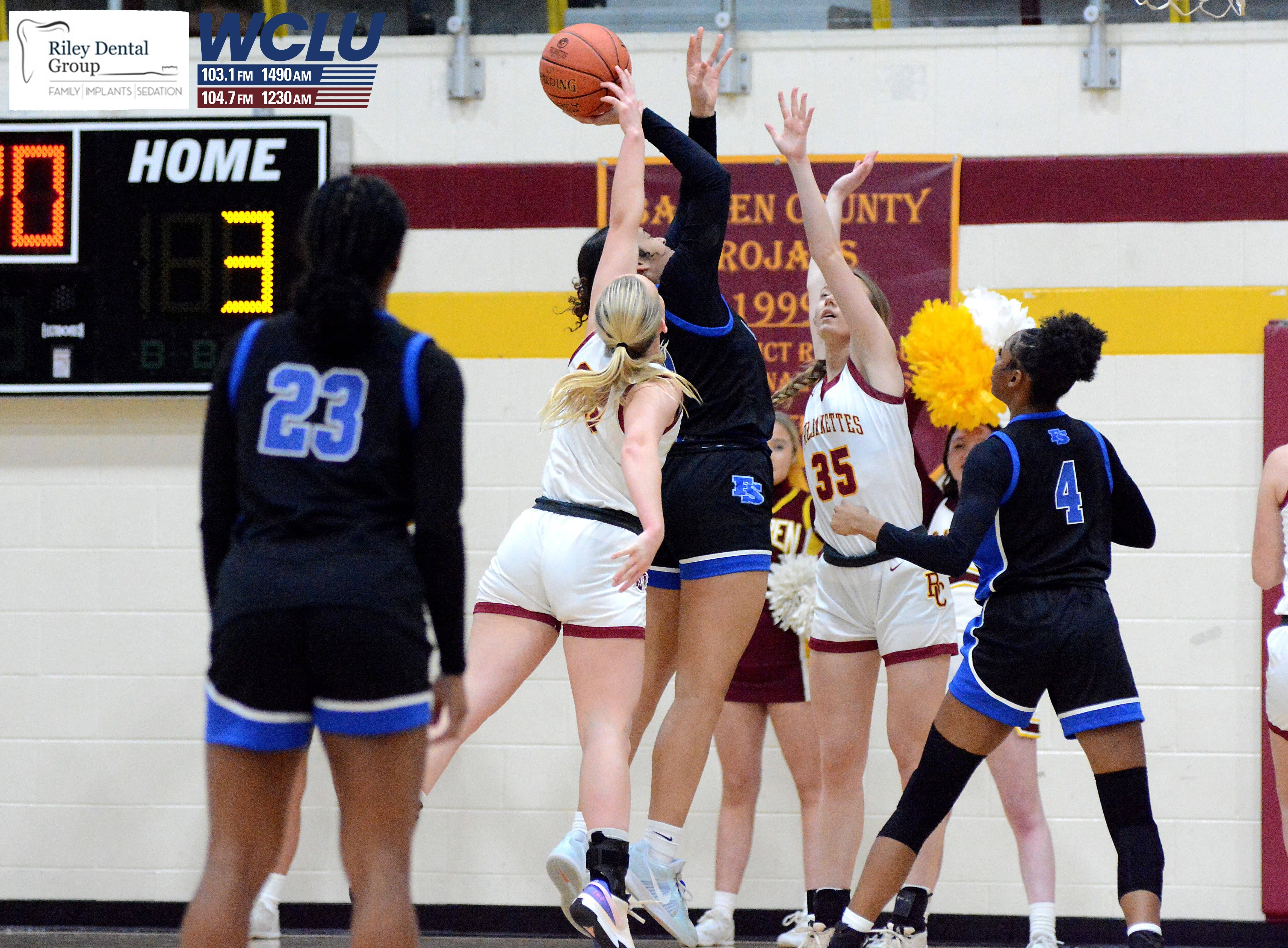 Barren County’s Shelby Byrd blocks a shot against Franklin-Simpson. Barren County lost, 55-49. John Brown/WCLU Sports
