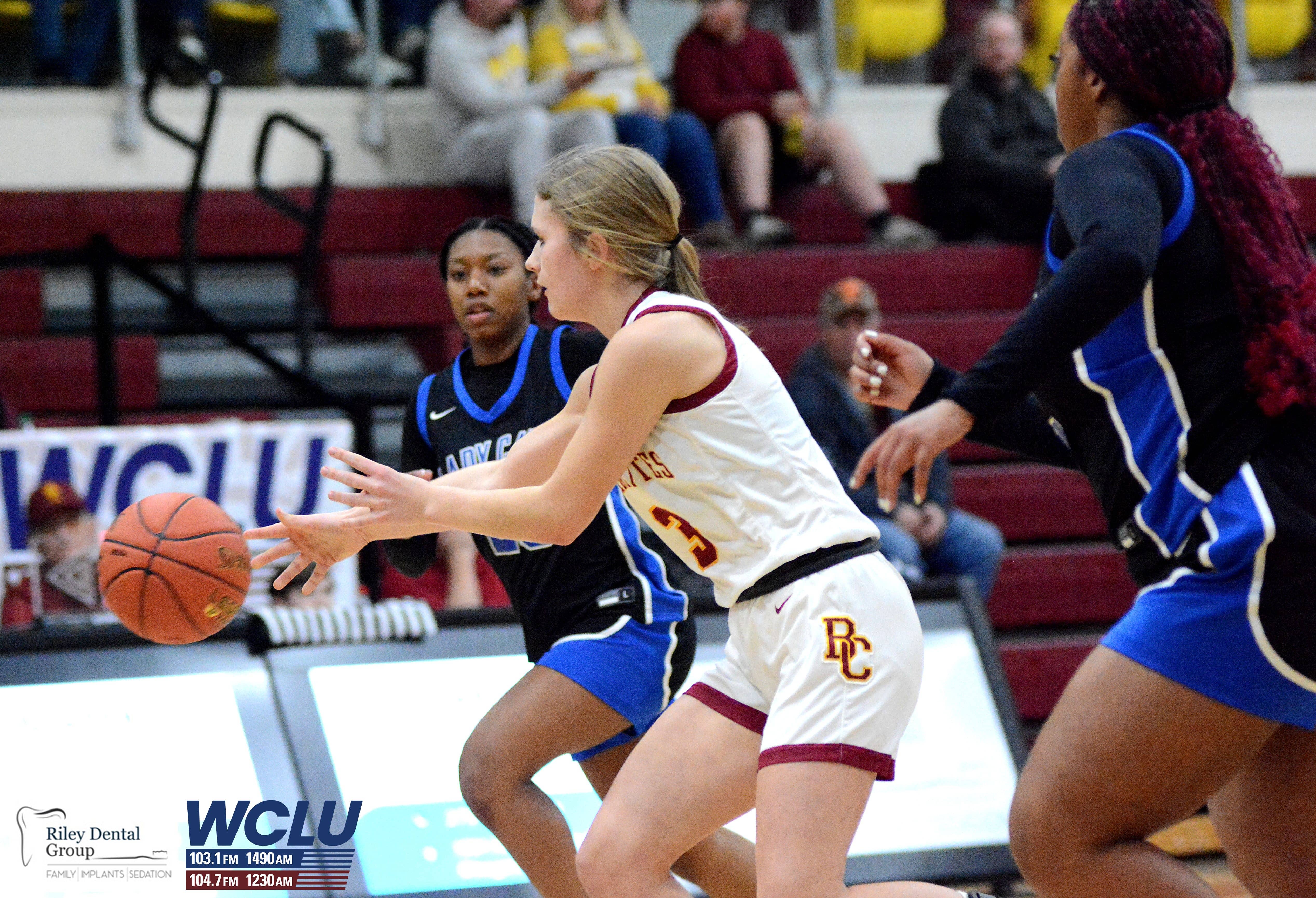 Barren County’s Mahalia Burton passes the ball against Franklin-Simpson. Barren County lost, 55-49. John Brown/WCLU Sports