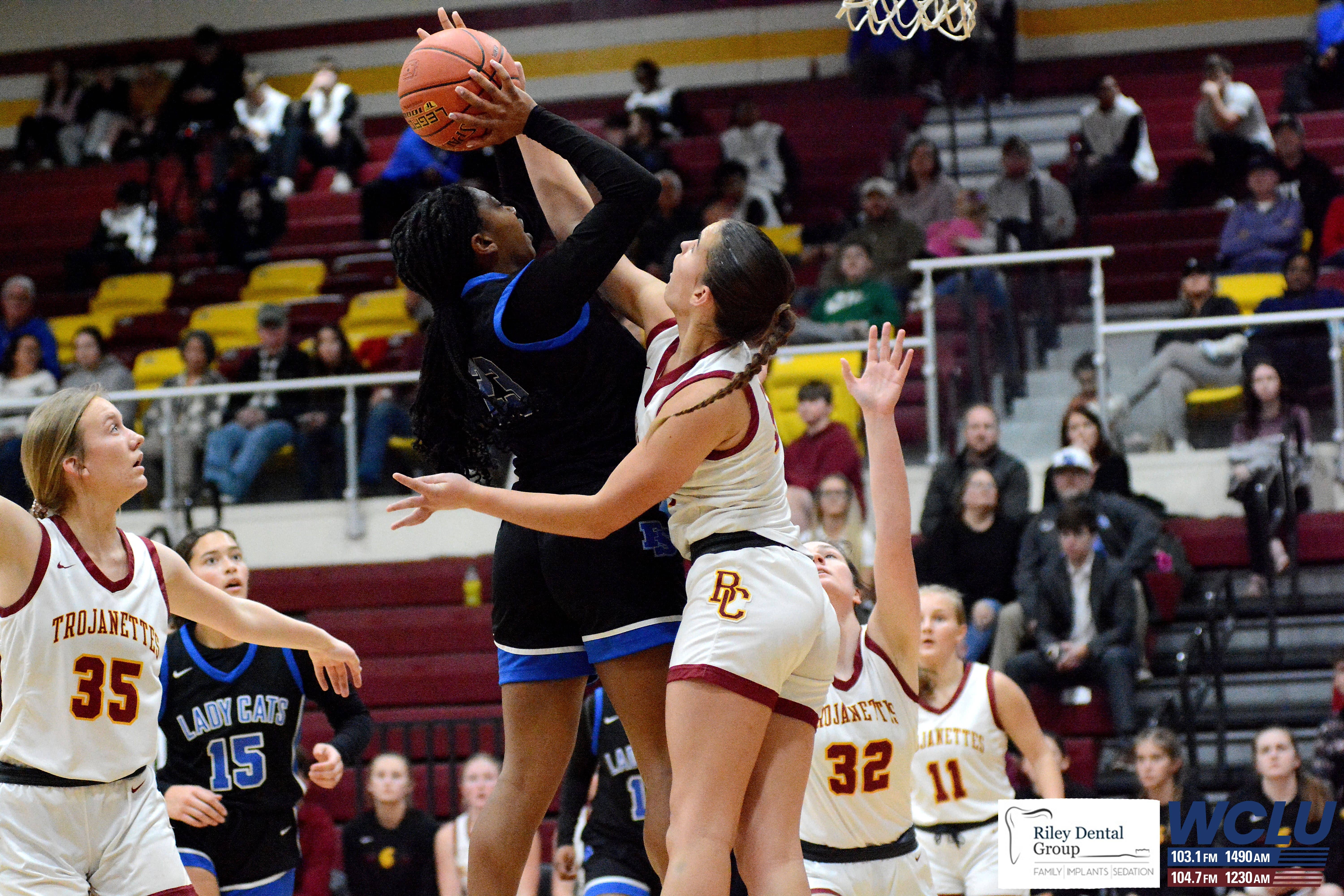 Barren County’s Katie Gearlds blocks a shot from behind against Franklin-Simpson. Barren County lost, 55-49. John Brown/WCLU Sports