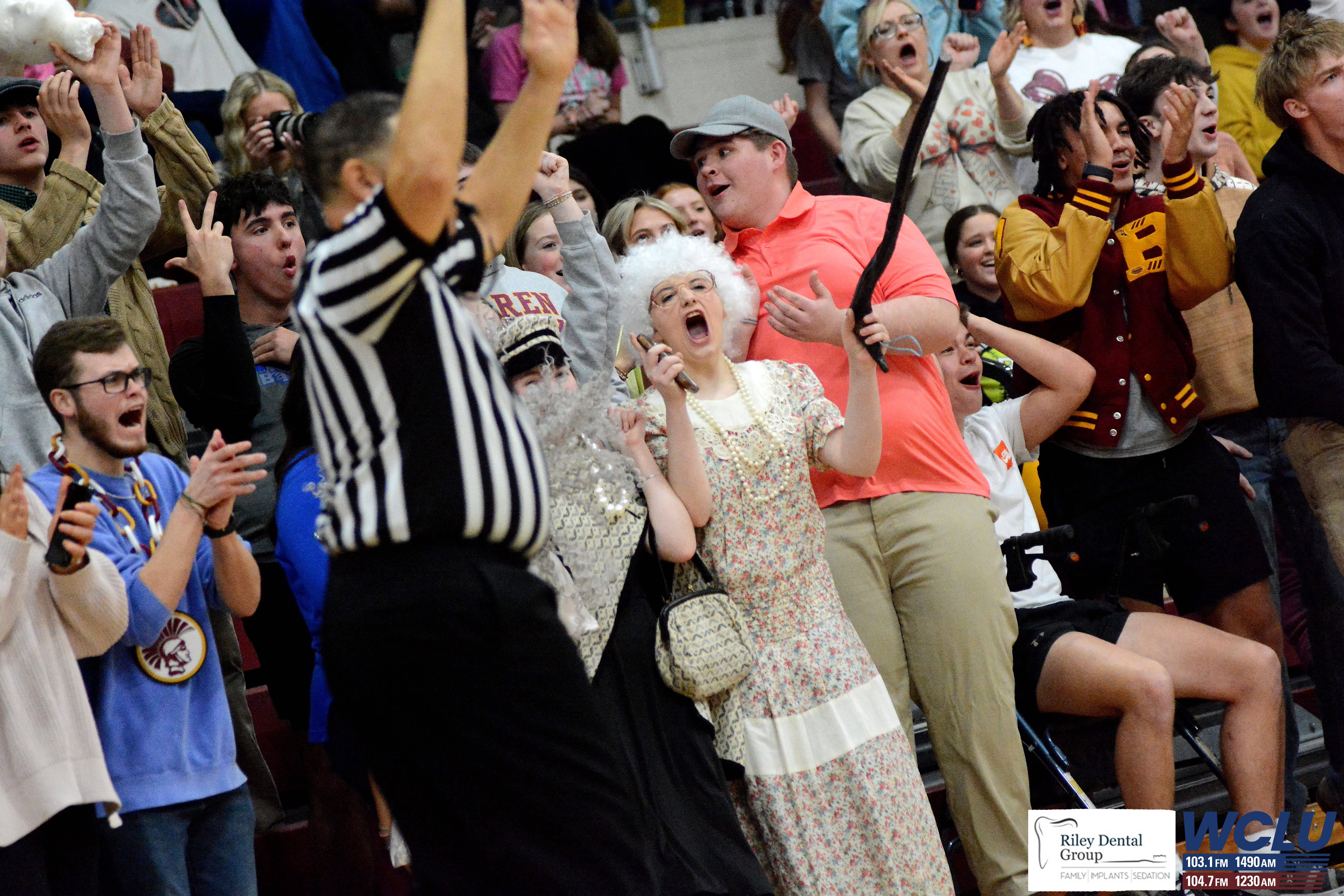 Barren County’s student section cheers after Ann Ashley Atkinson’s 3-pointer ties the game against Franklin-Simpson. Barren County lost, 55-49. John Brown/WCLU Sports
