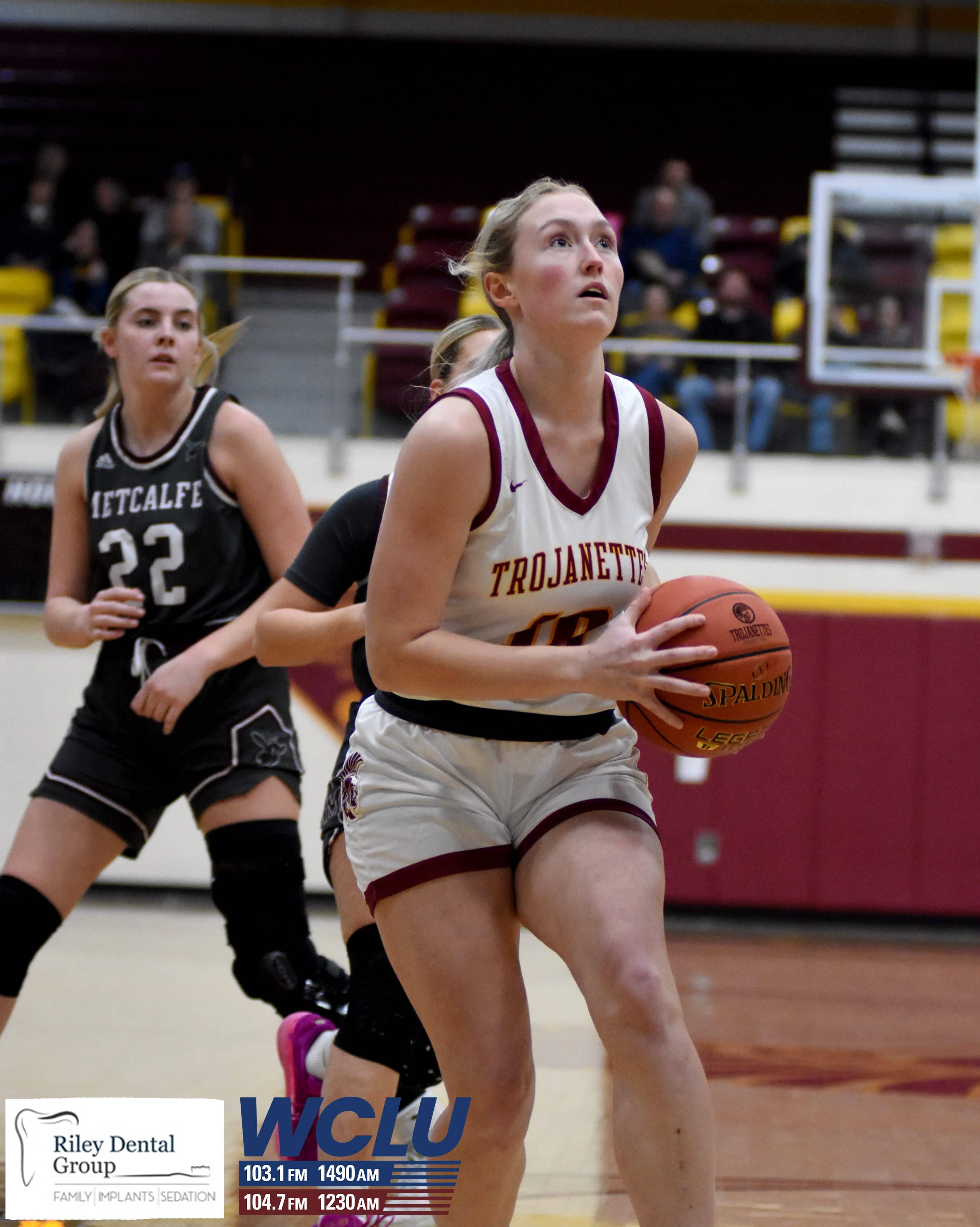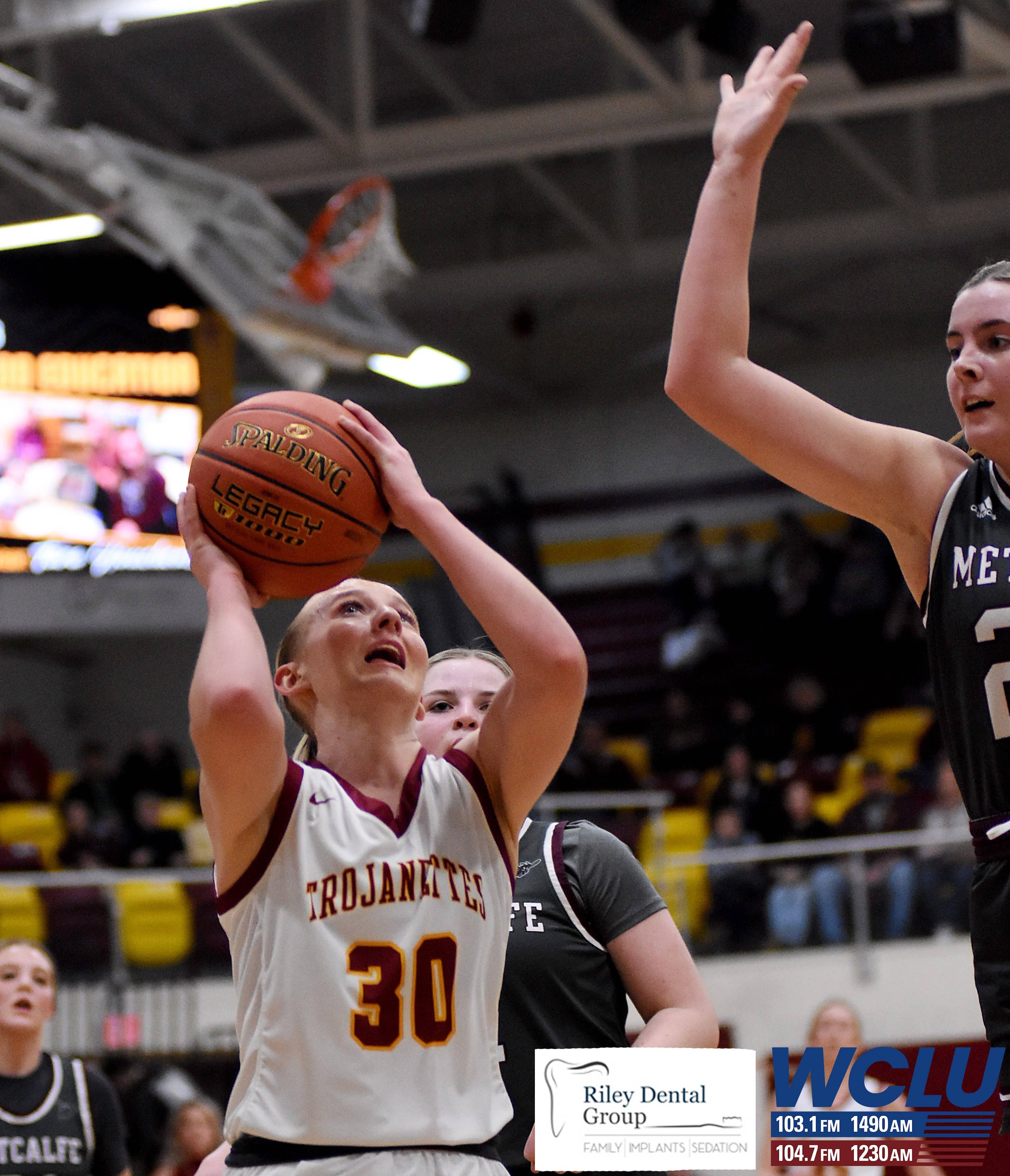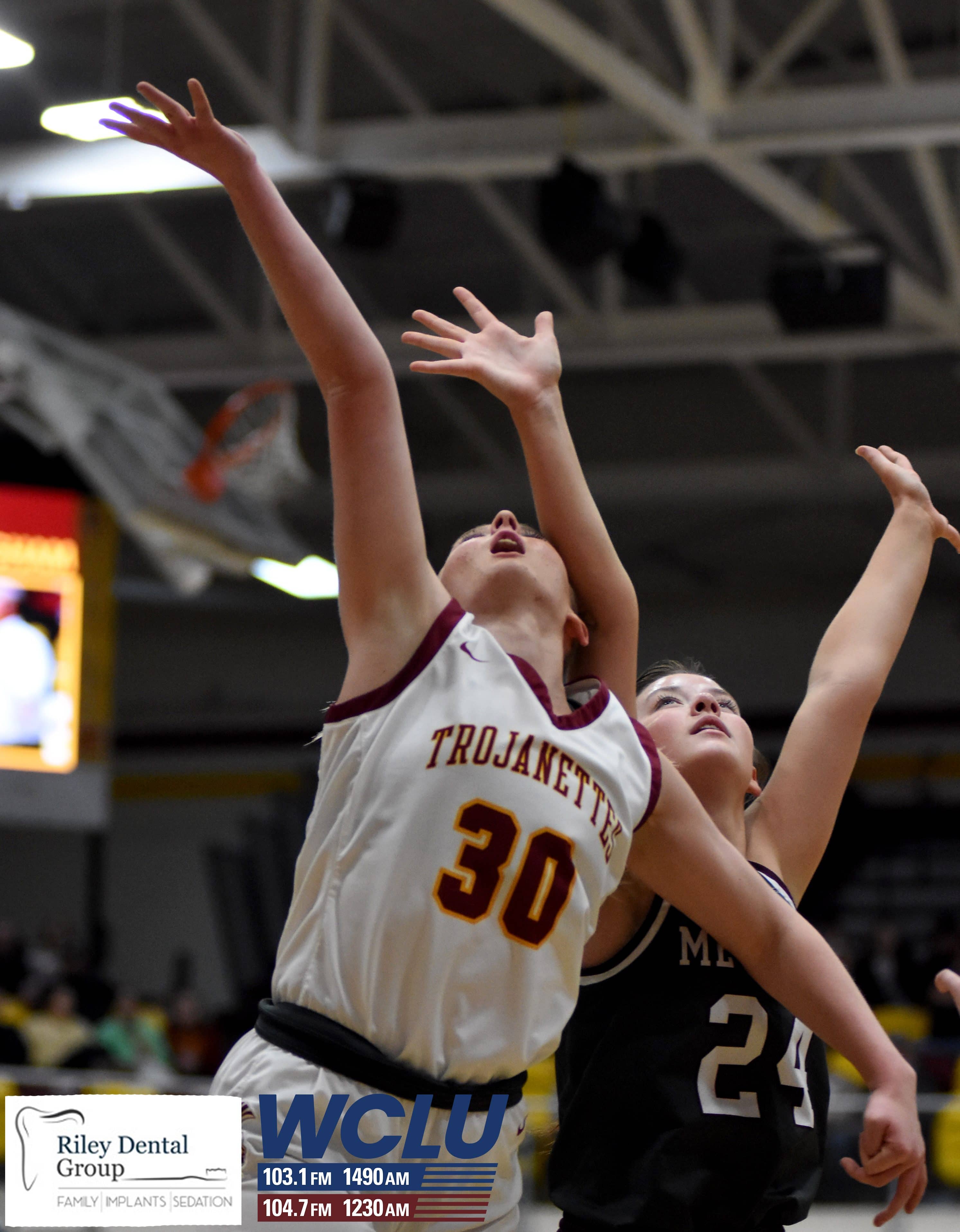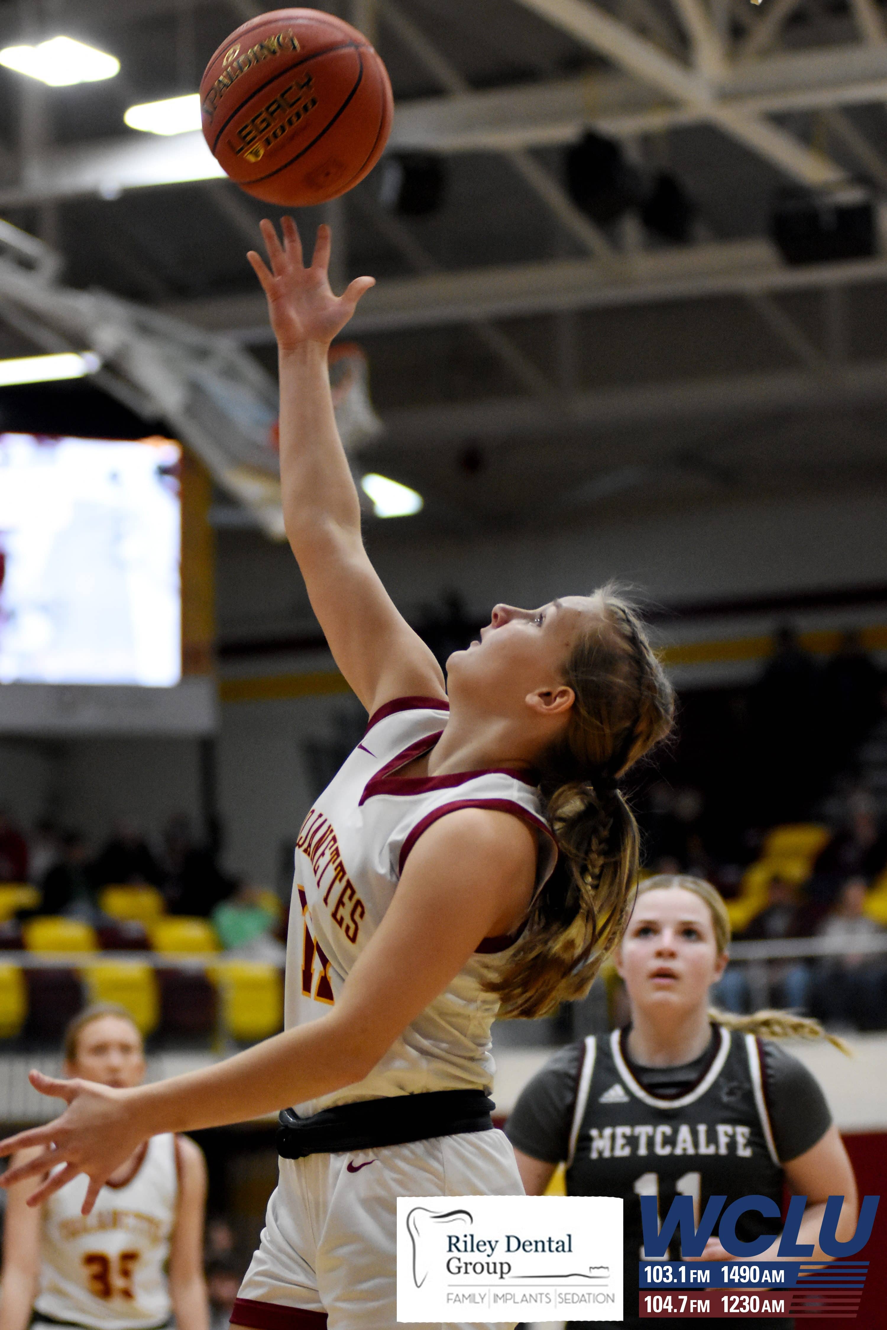 Barren County’s Addy Slagle shoots a reverse layup against Metcalfe County. The Trojanettes lost, 47-38. James Brown/WCLU Sports