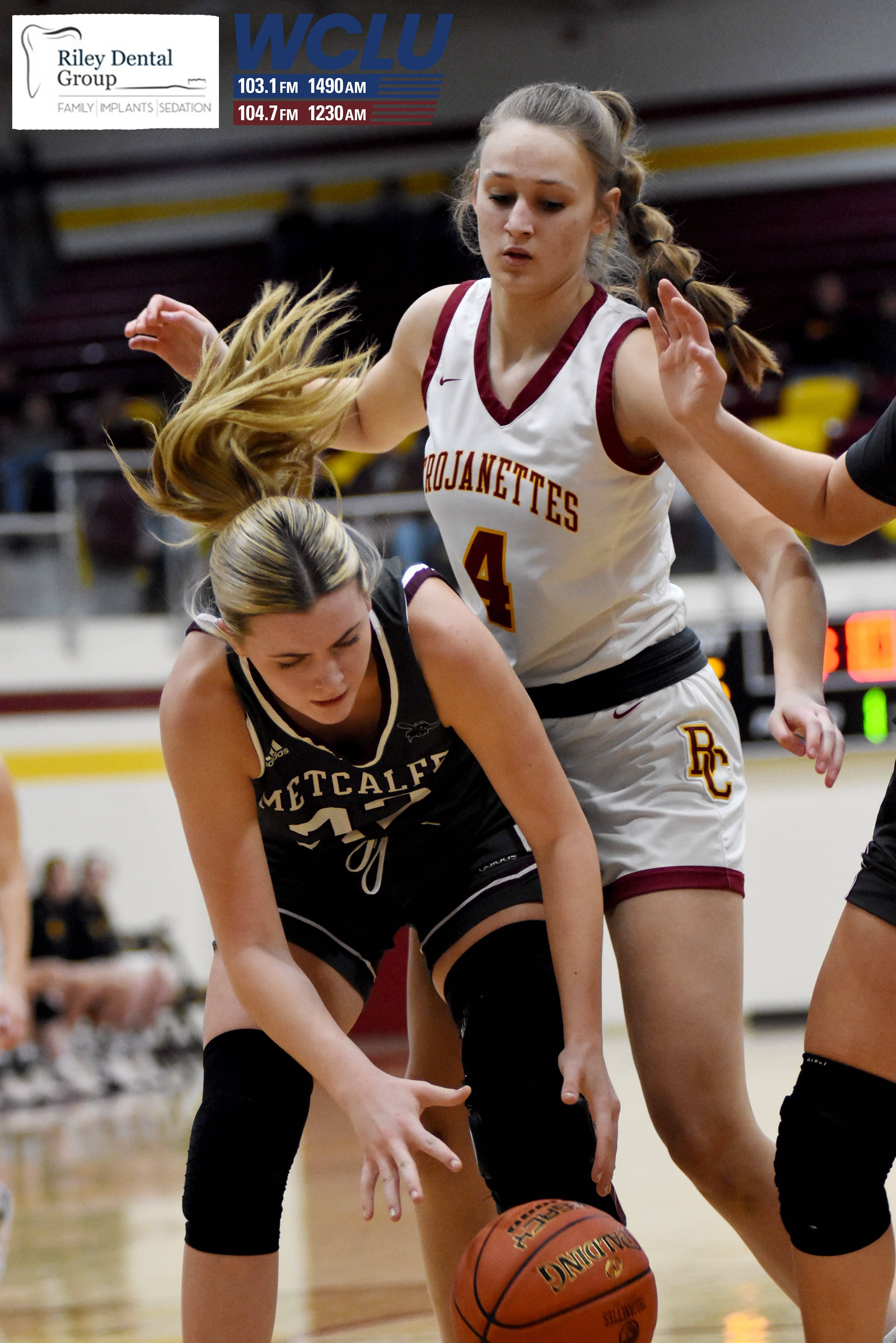 Barren County’s Hannah Bragg defends against Metcalfe County. The Trojanettes lost, 47-38. James Brown/WCLU Sports
