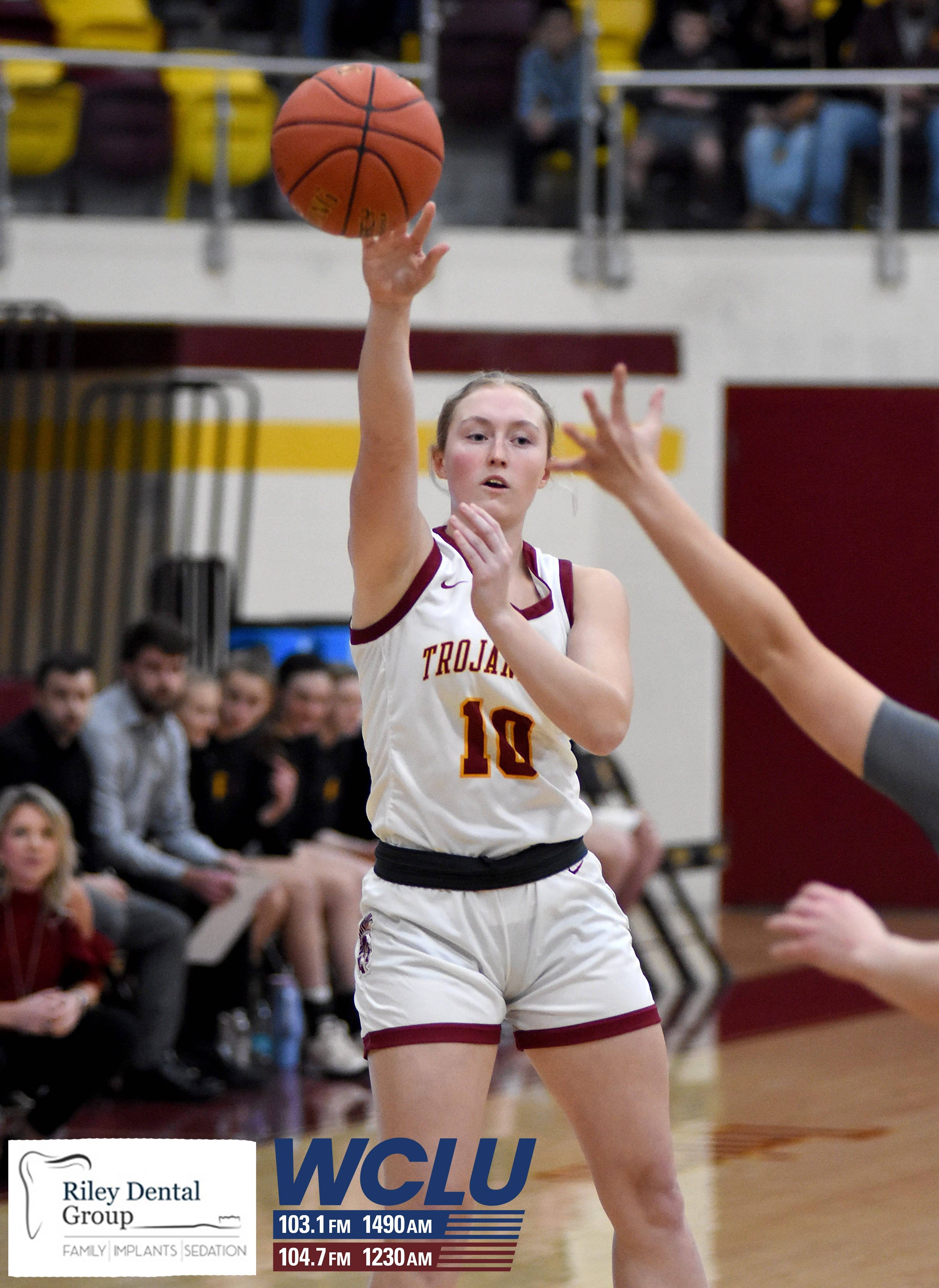 Barren County’s Katie Elmore passes the ball against Metcalfe County. The Trojanettes lost, 47-38. James Brown/WCLU Sports