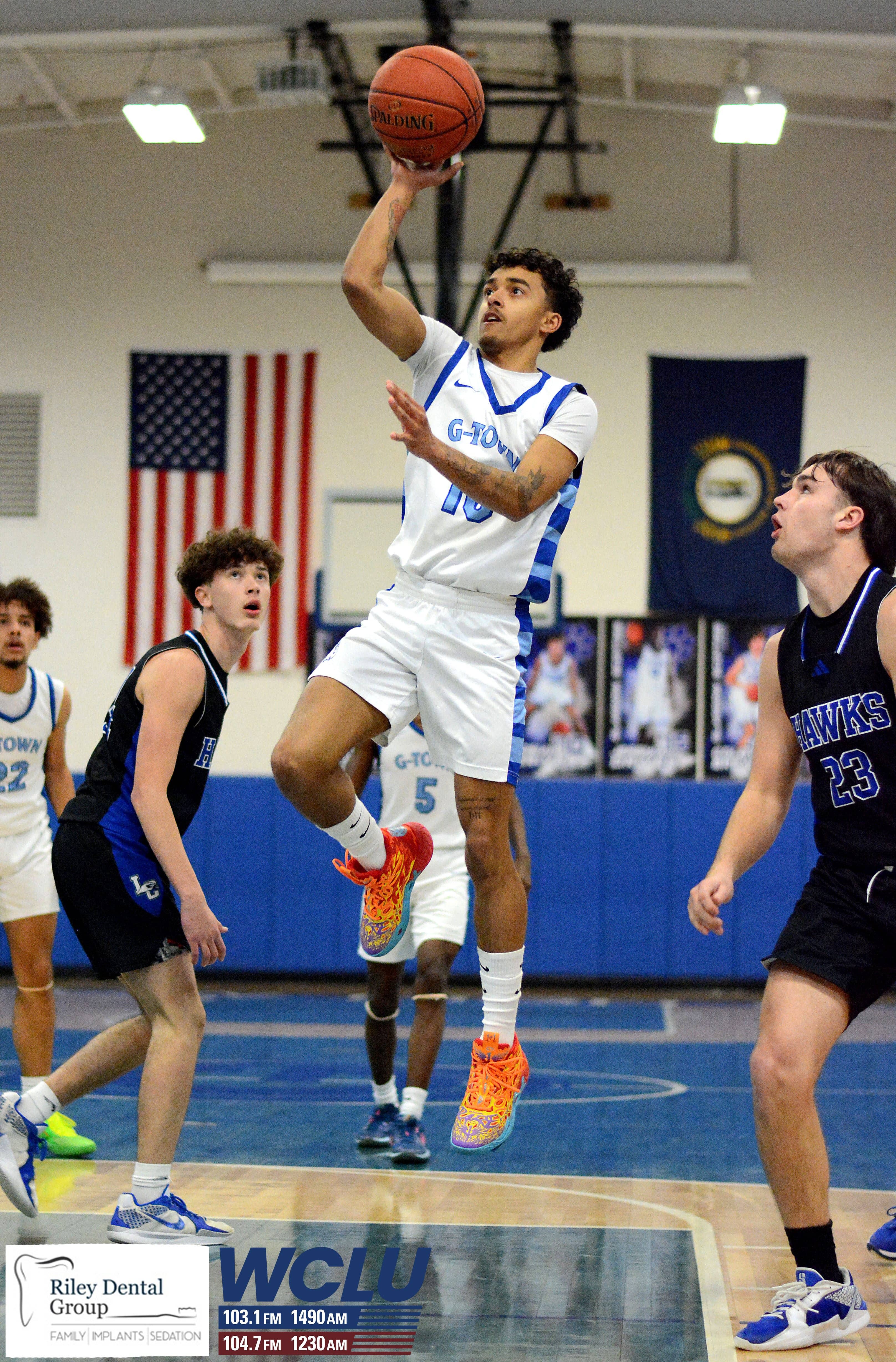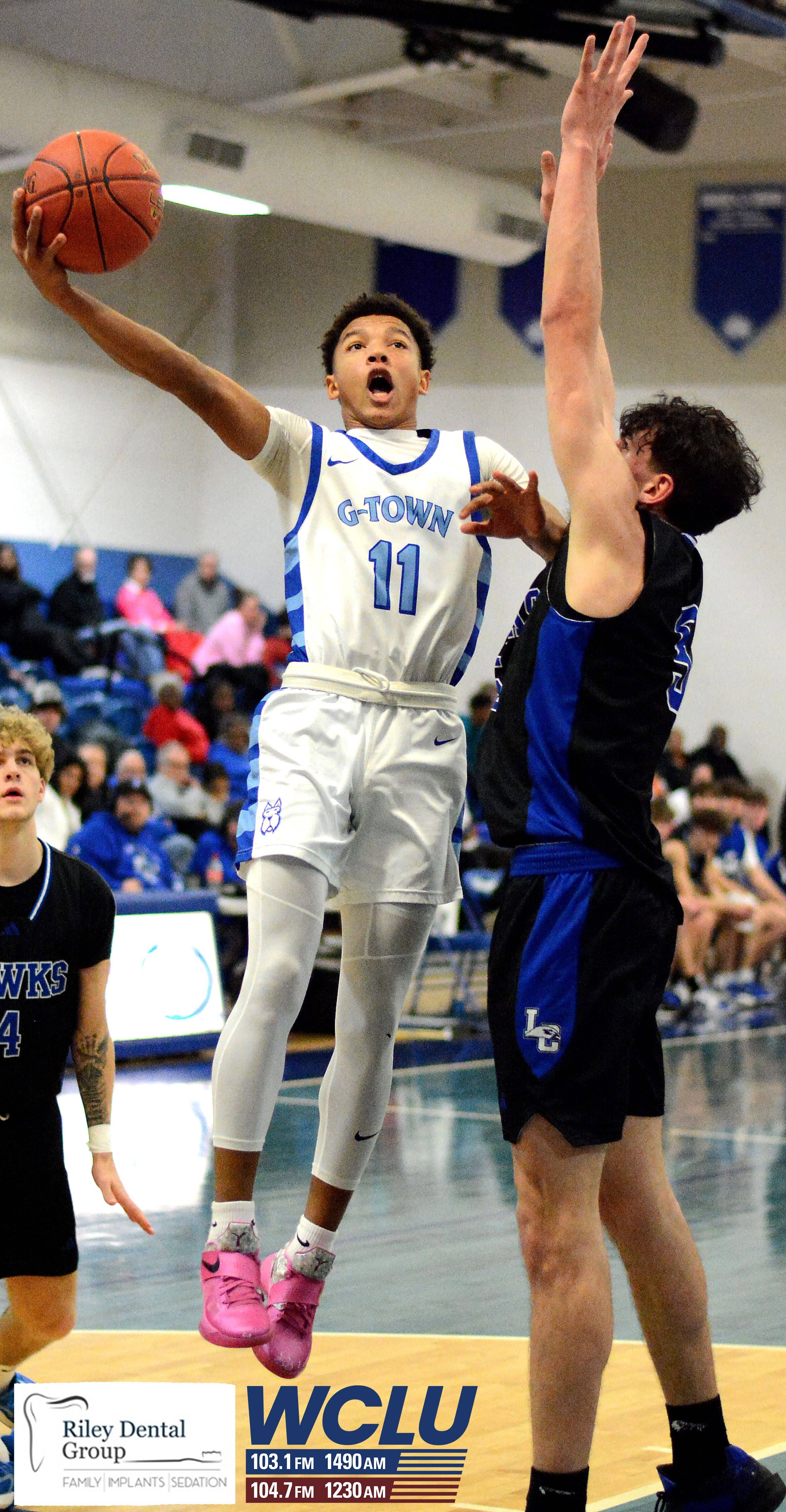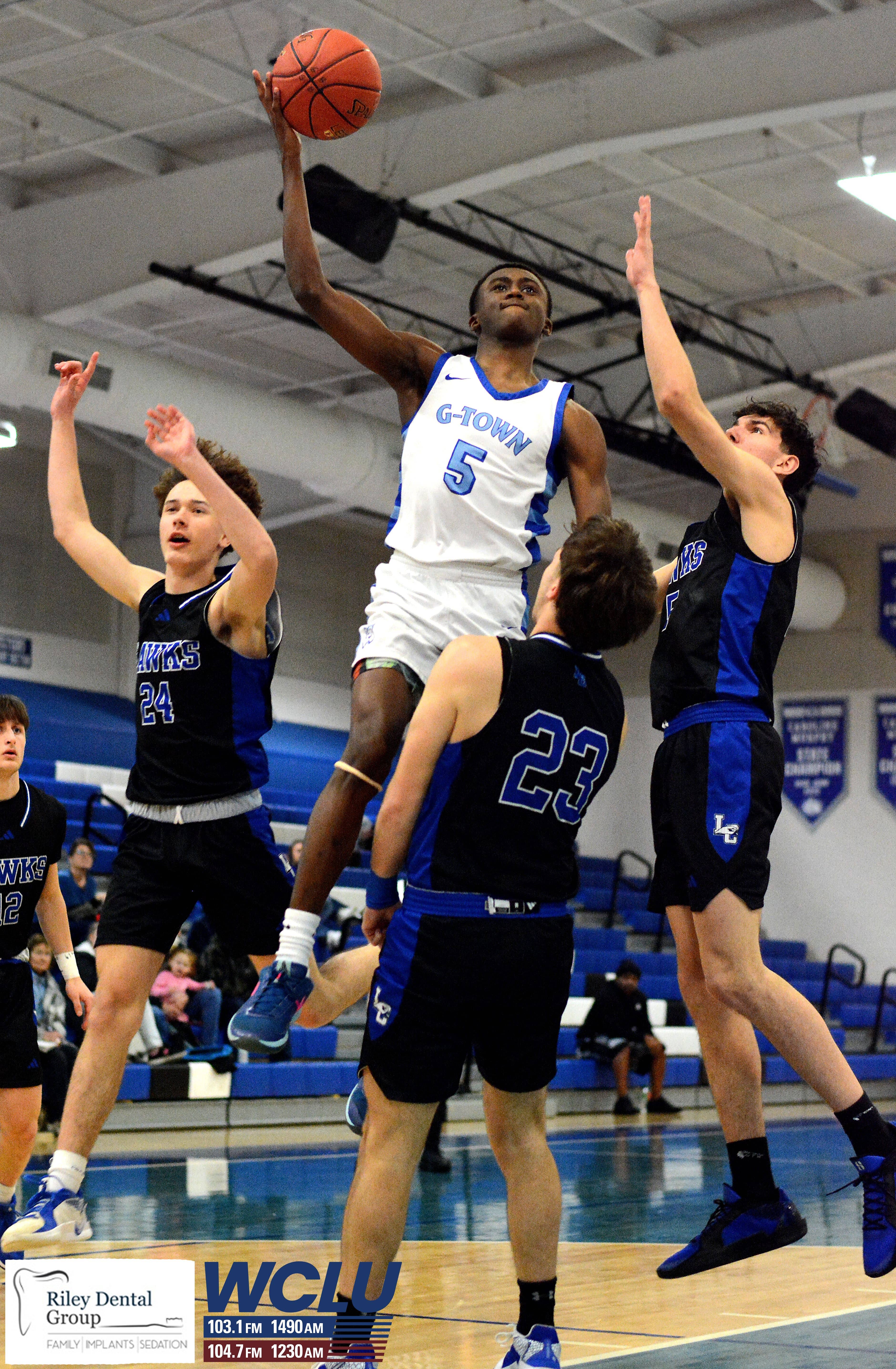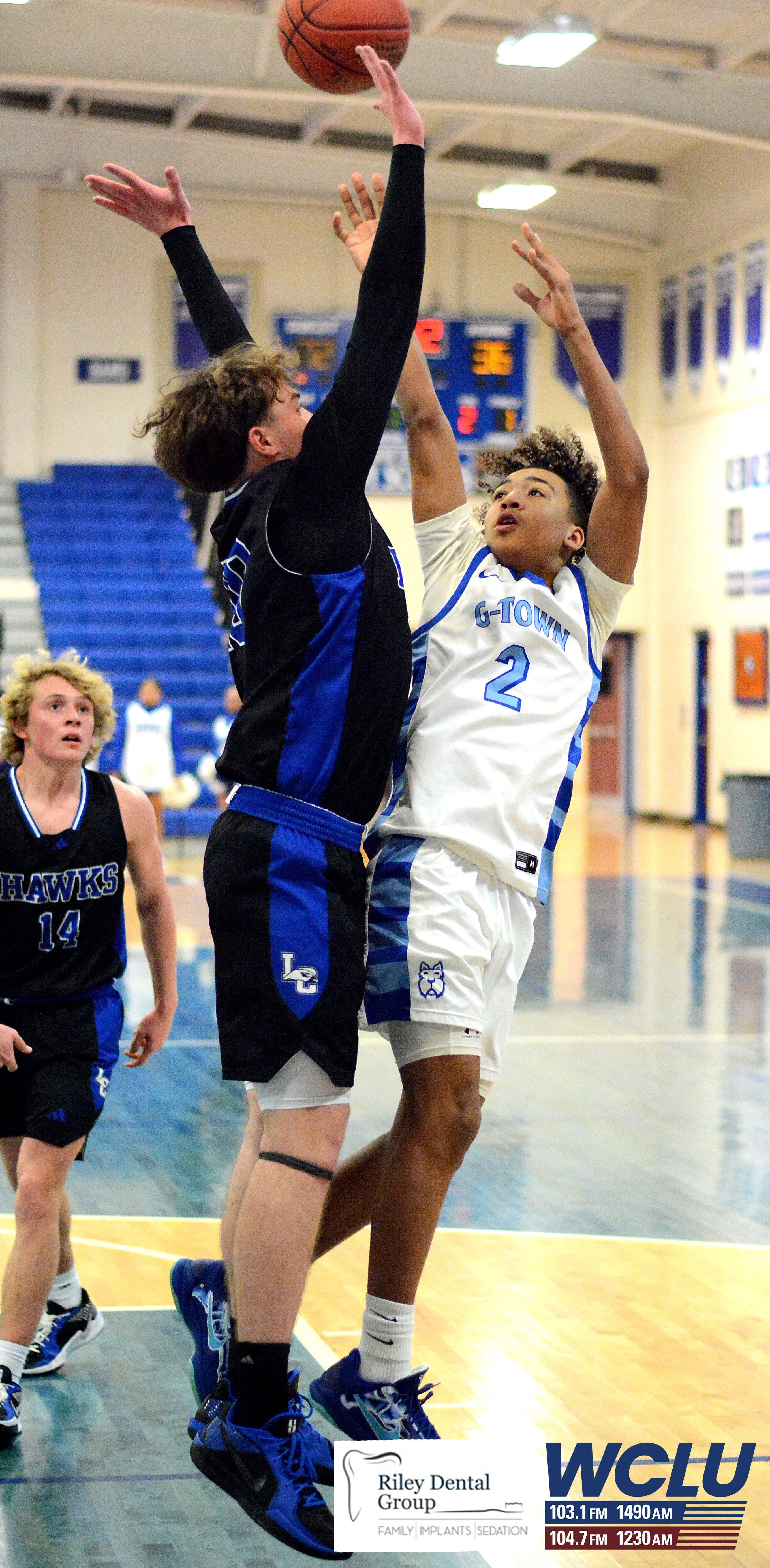 Glasgow’s Jaylen Bradley shoots a layup against LaRue County. Glasgow lost, 80-40. John Brown/WCLU Sports