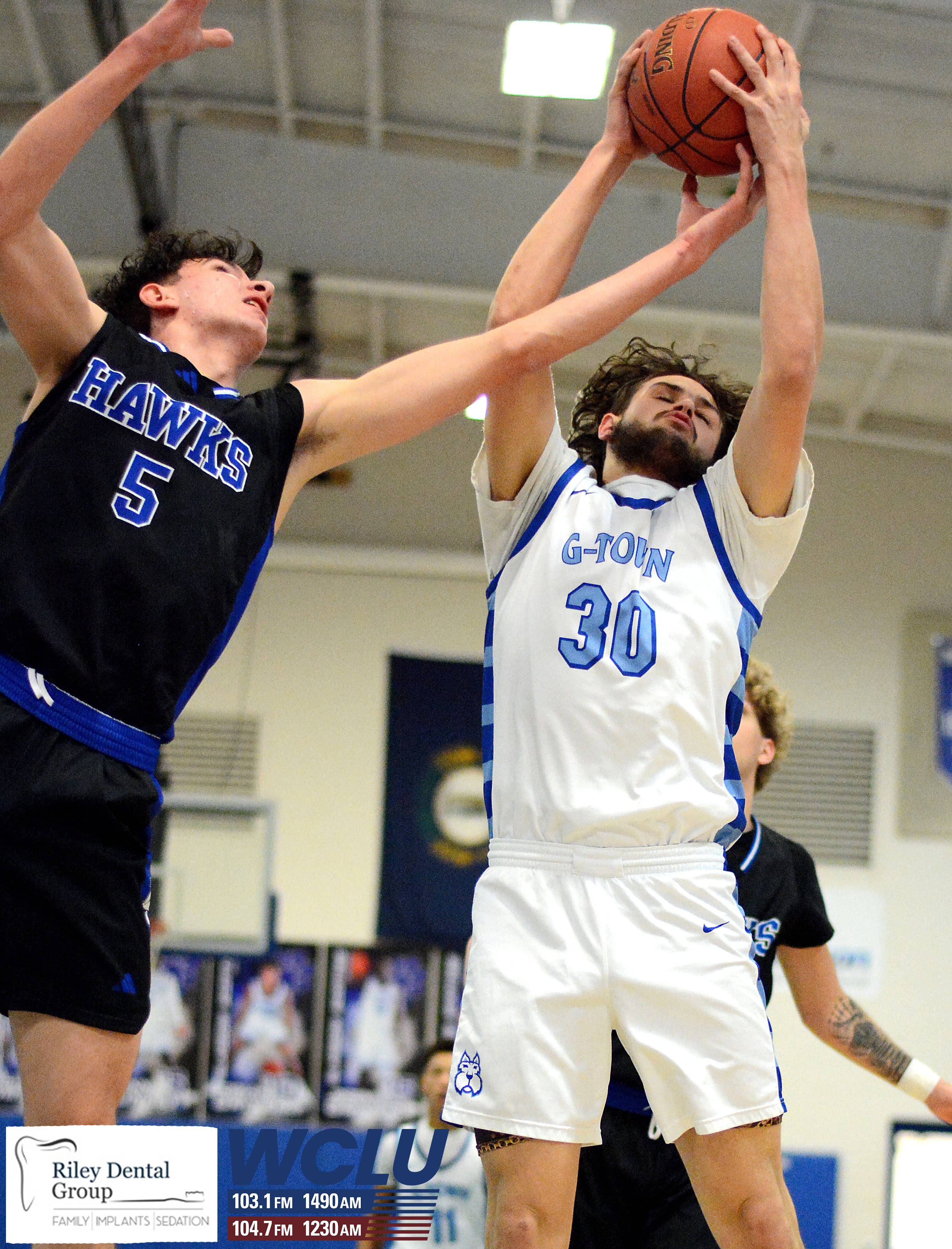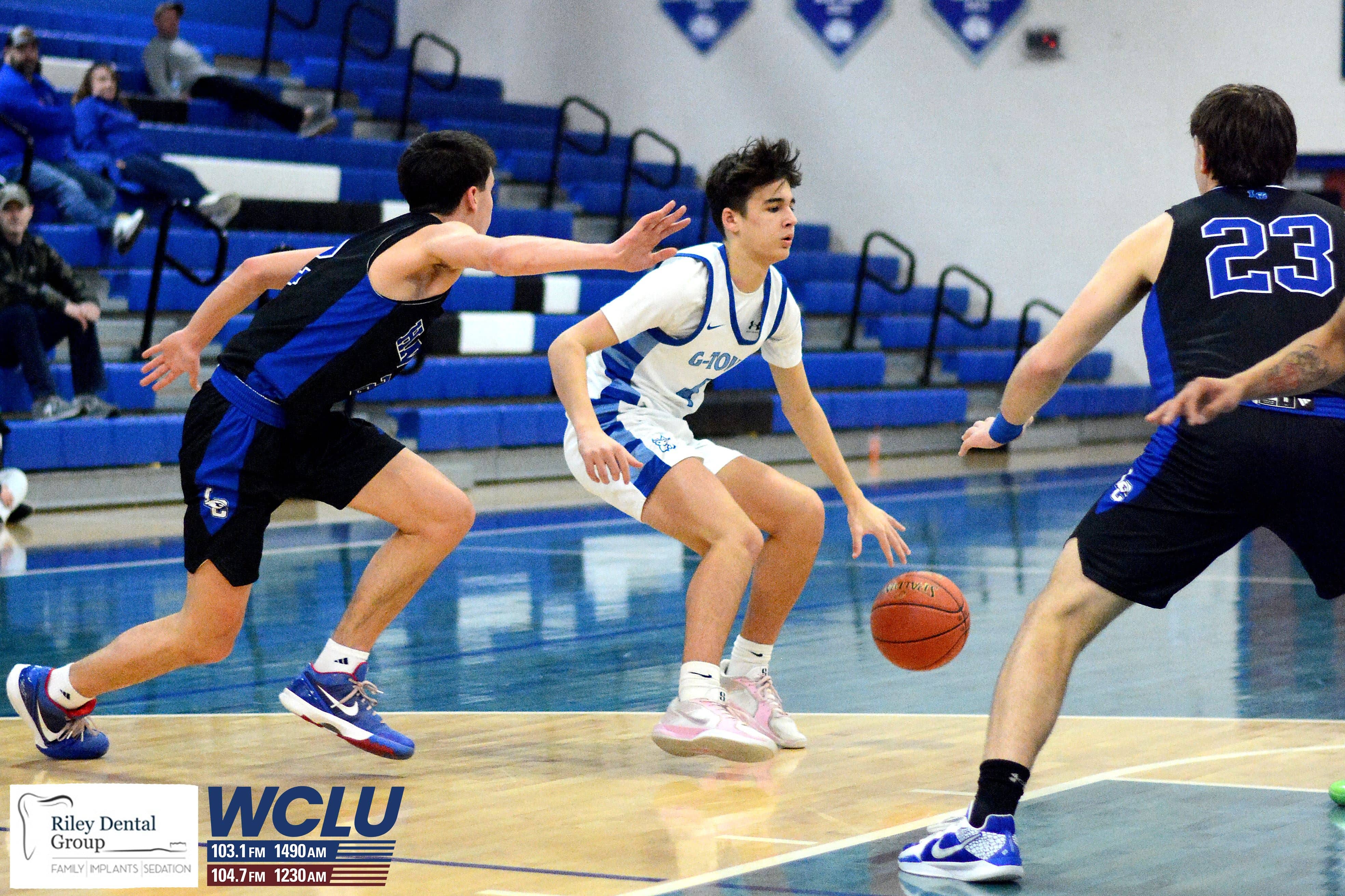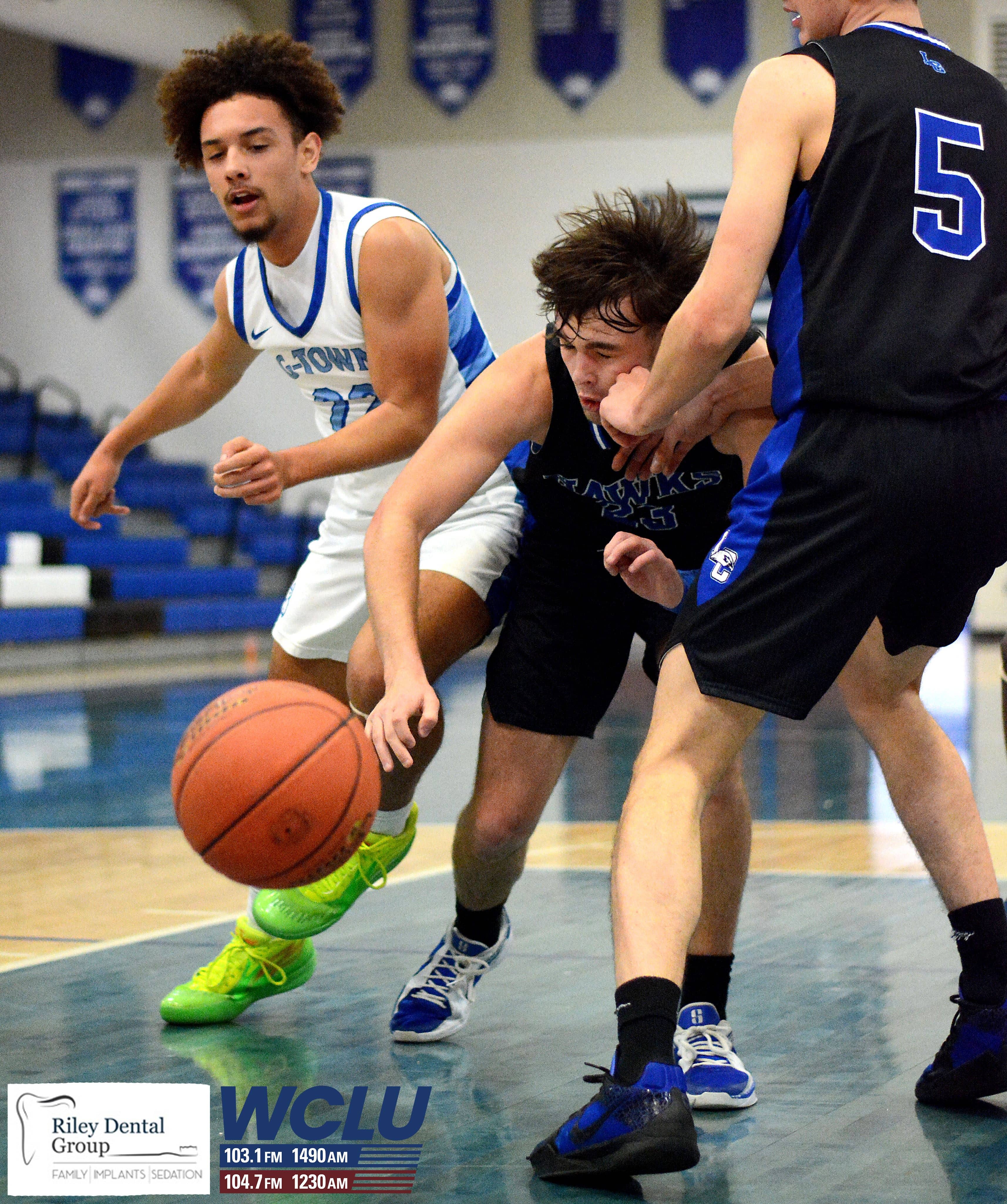 Glasgow’s Grayson Bartley recovers a loose ball against LaRue County. Glasgow lost, 80-40. John Brown/WCLU Sports