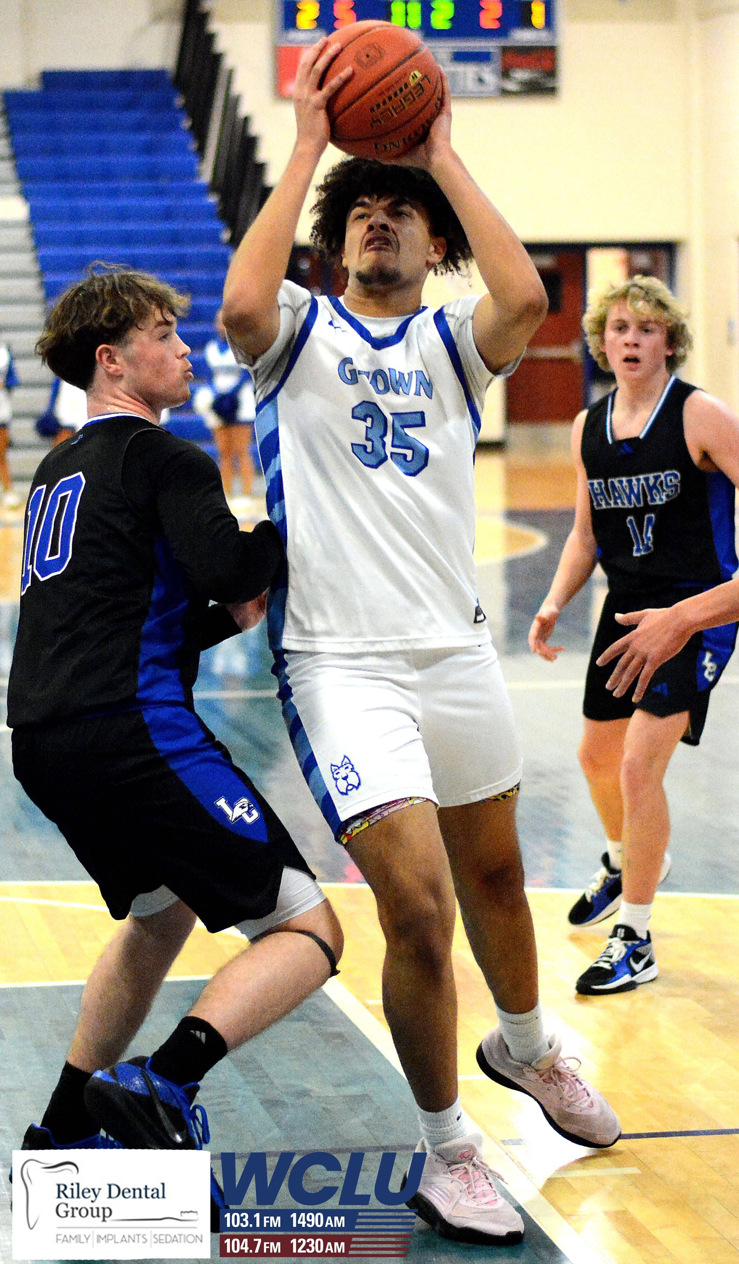 Glasgow’s Landon Minton grabs a rebound against LaRue County. Glasgow lost, 80-40. John Brown/WCLU Sports