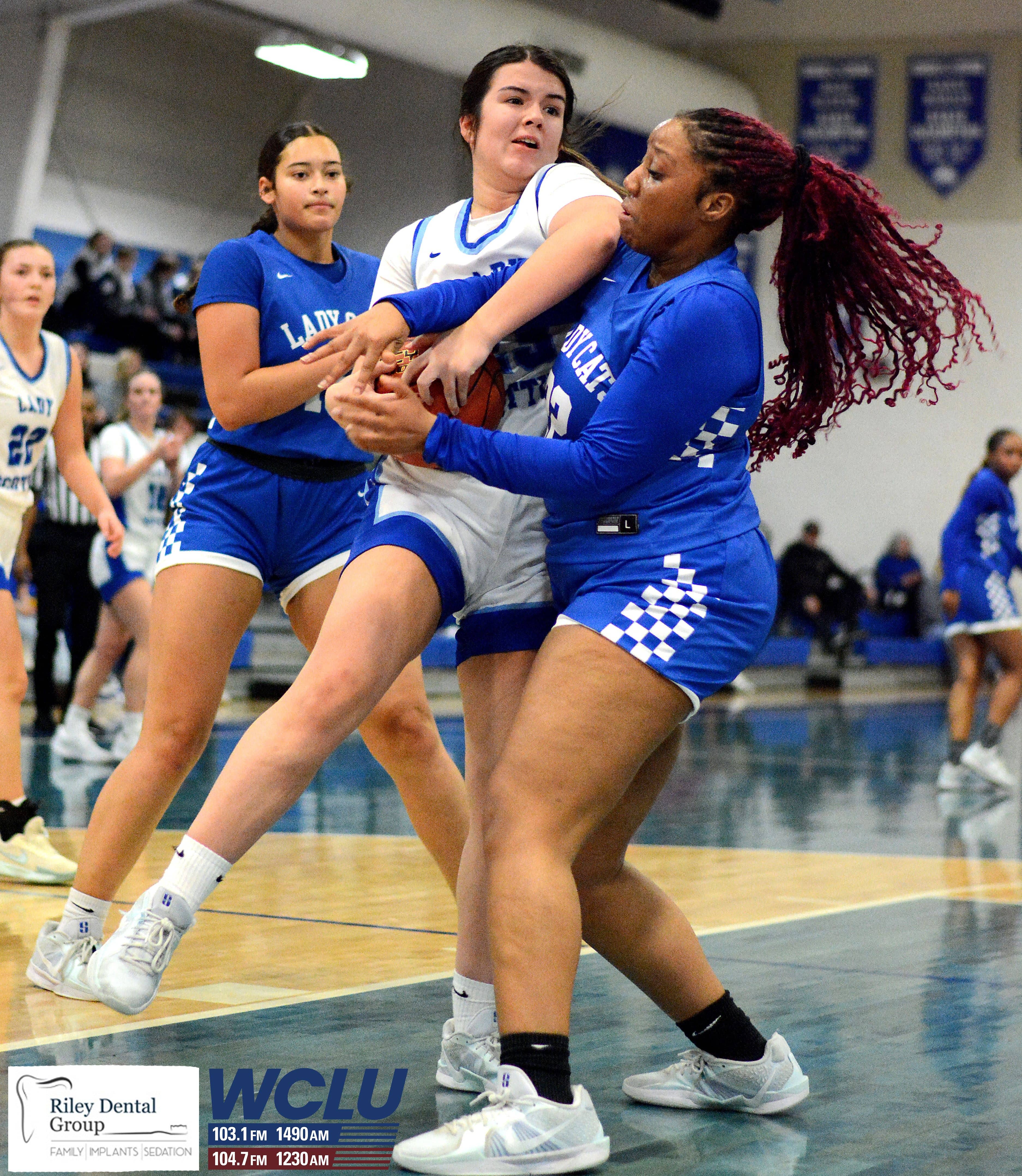 Glasgow’s Addyson Norris battles for a rebound against Franklin-Simpson. Glasgow lost, 65-40. John Brown/WCLU Sports