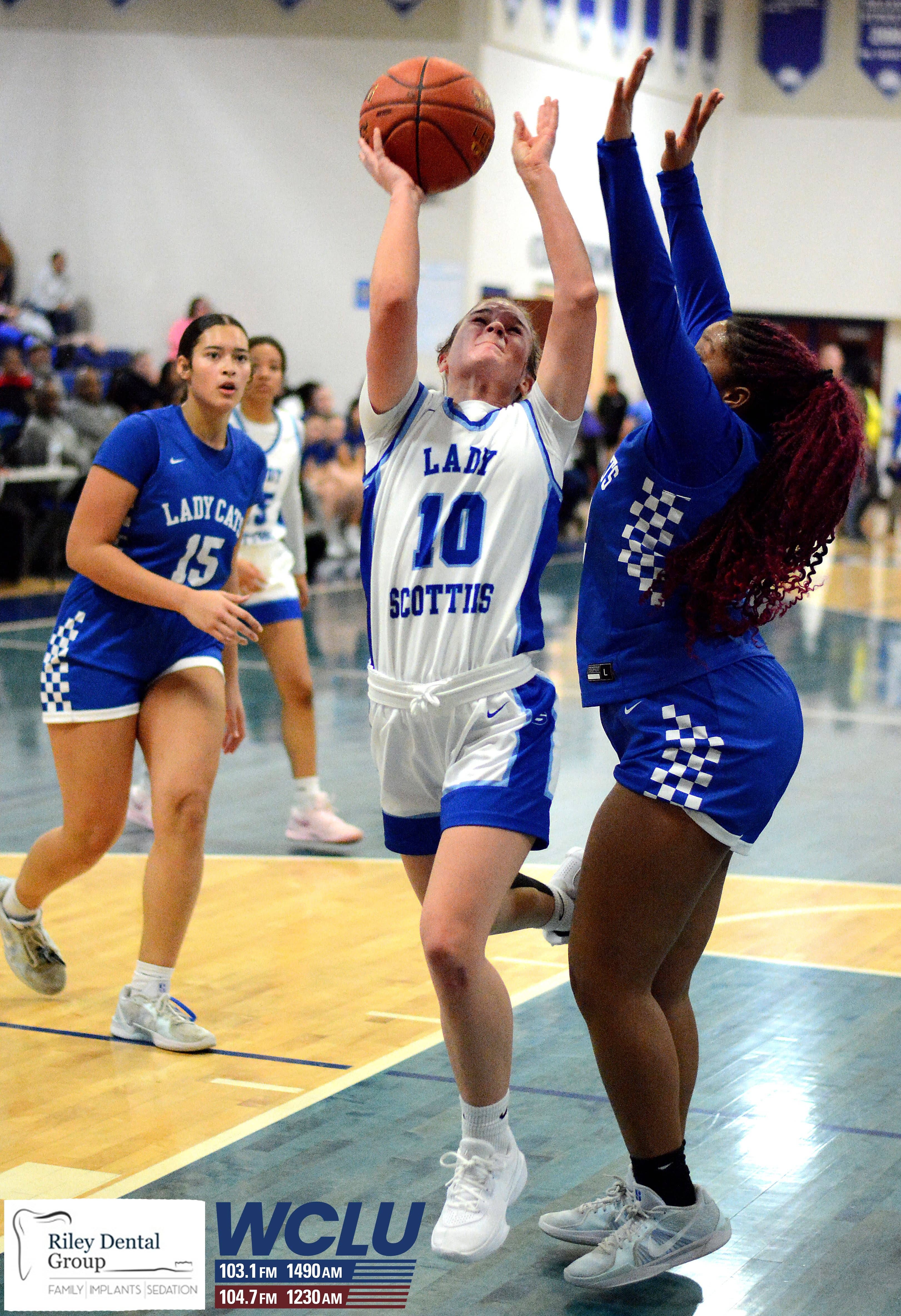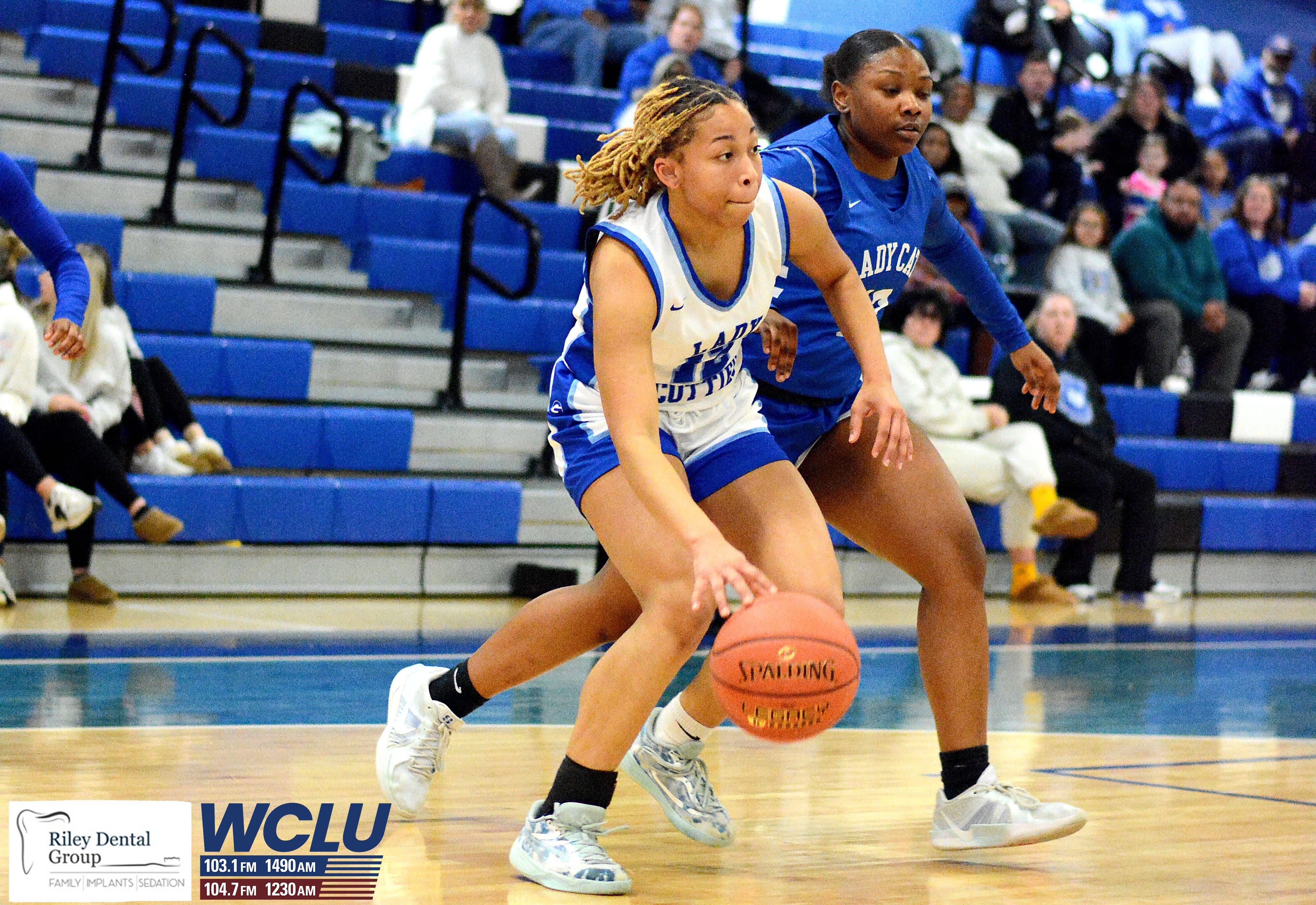 Glasgow’s Jayla Craine drives toward the basket against Franklin-Simpson. Glasgow lost, 65-40. John Brown/WCLU Sports
