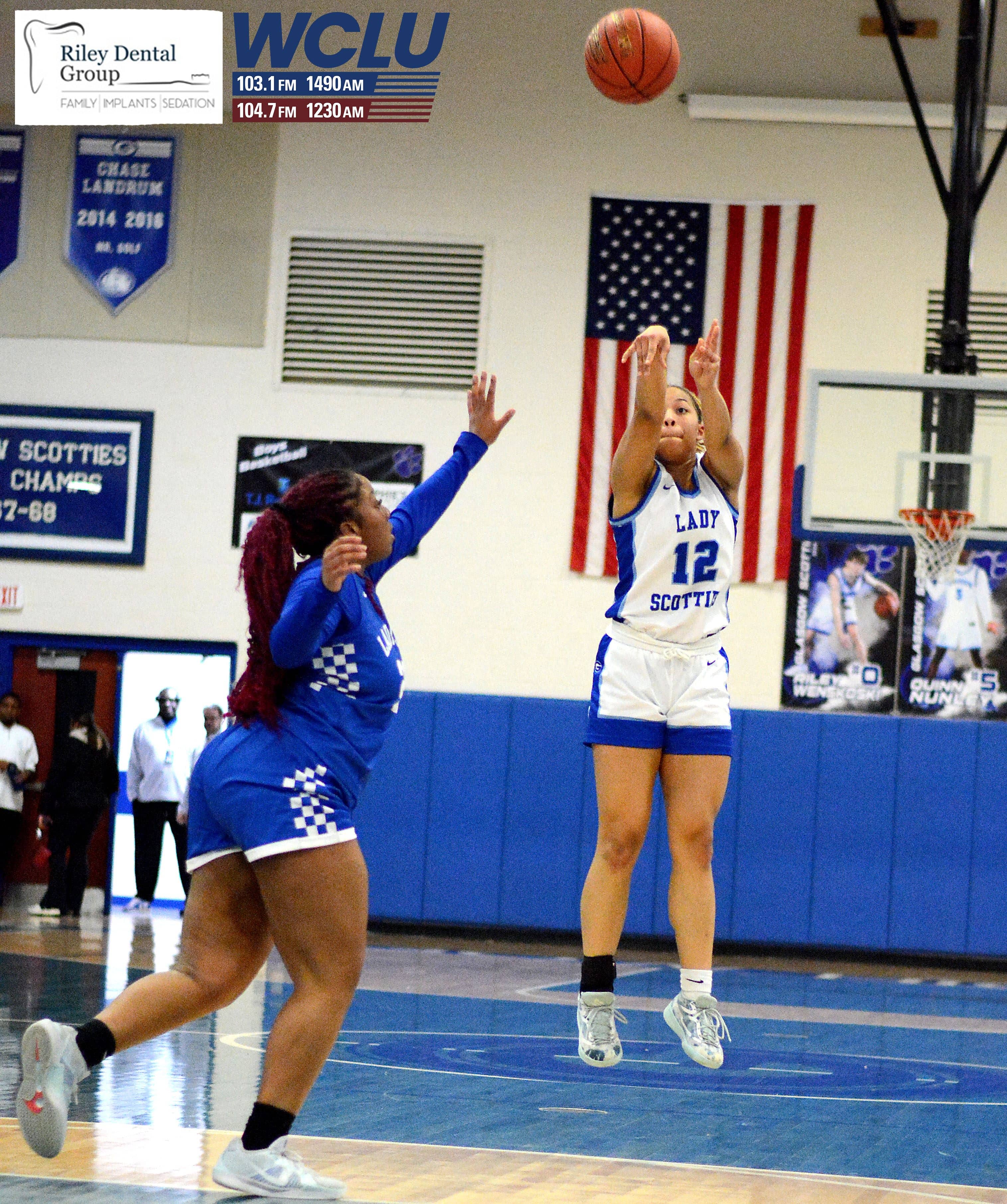 Glasgow’s Cynthia Austin shoots a 3-pointer against Franklin-Simpson. Glasgow lost, 65-40. John Brown/WCLU Sports